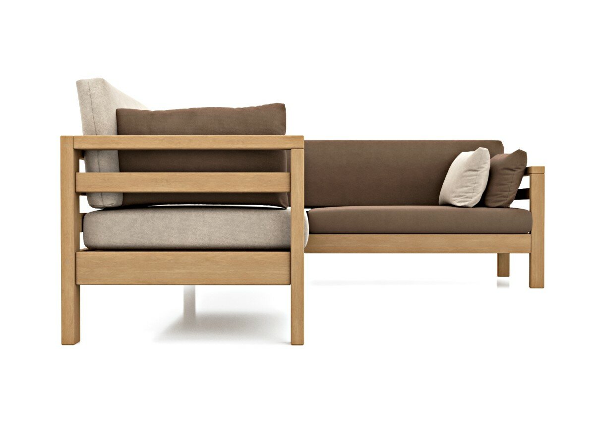 Купить Диван садовый угловой Soft Element Бонни коричневый, массив дерева, велюр, с подушками на террасу, на веранду, для дачи и сада, дачный, для бани