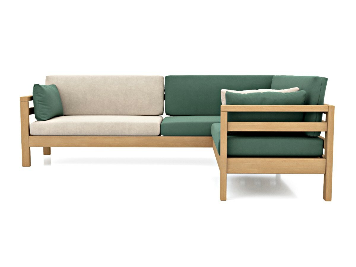 Купить Диван угловой садовый Soft Element Бонни зеленый, массив дерева, велюр, с подушками на террасу, на веранду, для дачи и сада, дачный, для бани