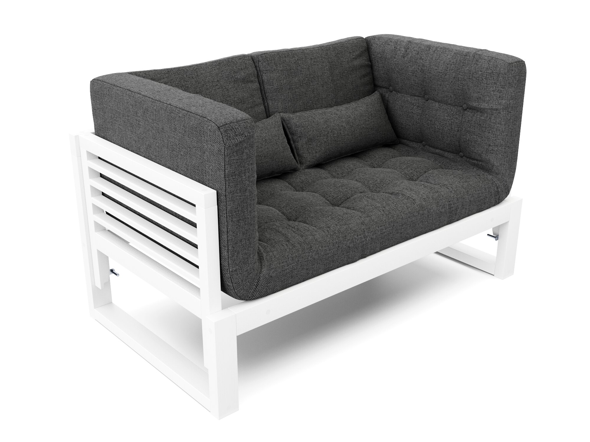 Купить Садовый диван кушетка Soft Element Бьерк Grafit + White, раскладные подлокотники, массив дерева, рогожка, на террасу, на веранду, для дачи и сада, дачный, для бани в комнату отдыха