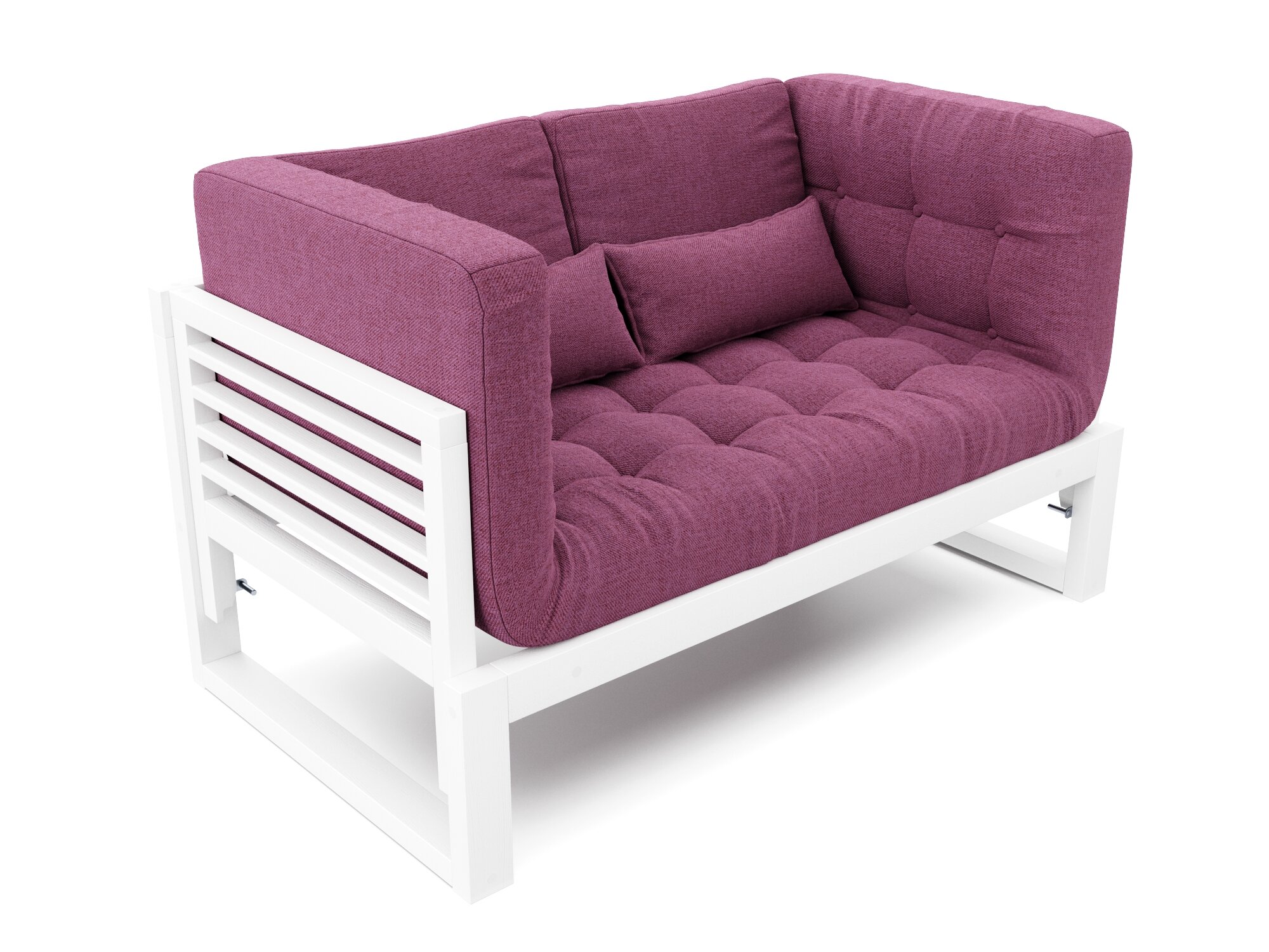 Диван садовый Soft Element Бьерк, фиолетовый, из дерева, раскладные подлокотники, с подушками, рогожка, на террасу, на веранду, для дачи, для бани
