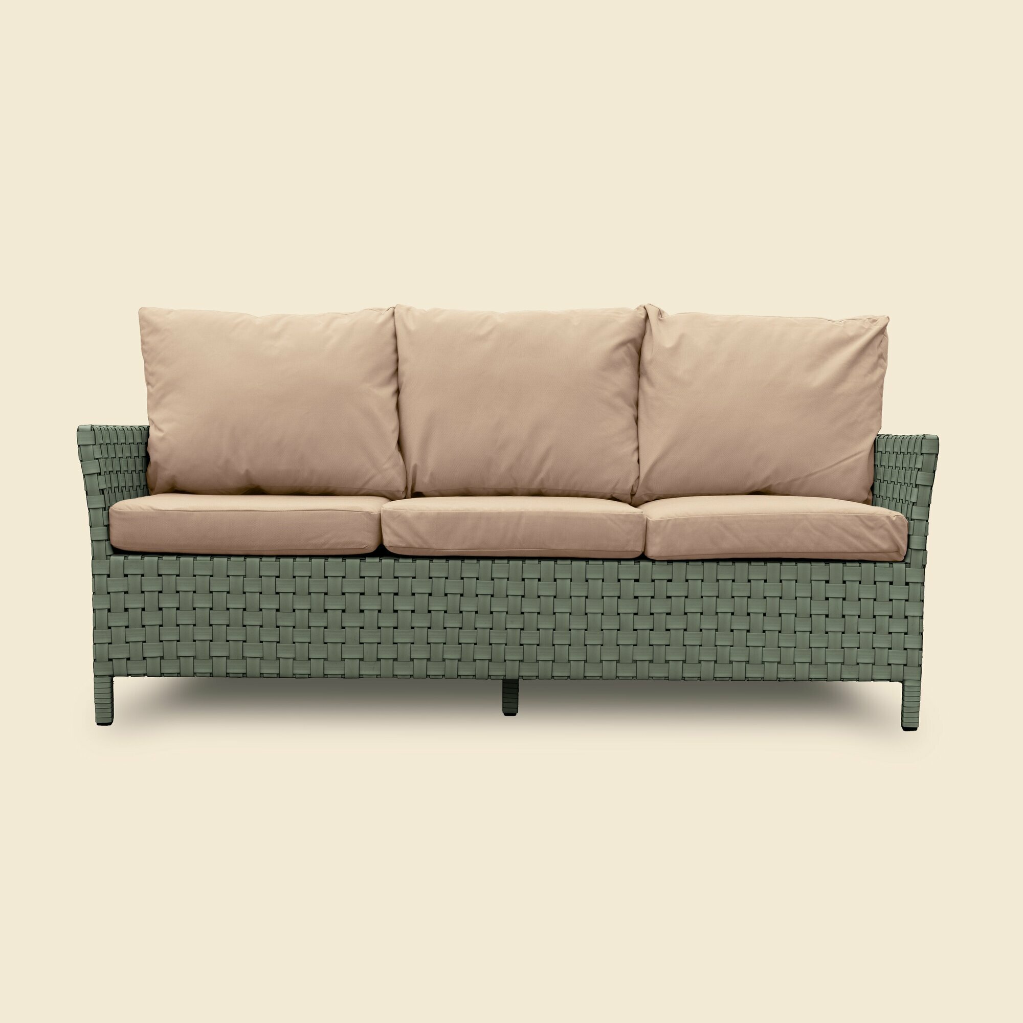 Купить Диван плетеный из ротанга 3-х местный STILO, хаки, подушки беж