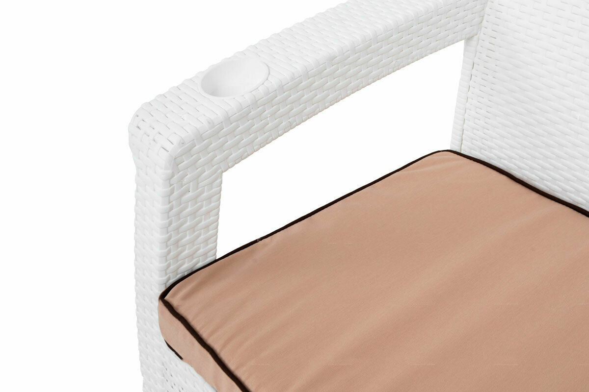 Диван 4SIS "Милан" диван 3-местный плетеный из роупа, каркас алюминий белый муар, роуп бежевый круглый, ткань бежевая 052 арт. MIL-S-3-001 W Mua beige(beige052)