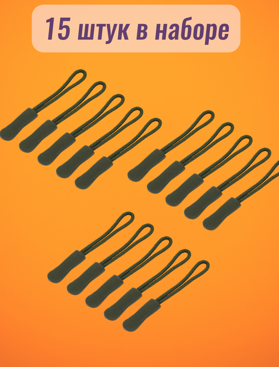 Пуллер Шовмаркет №8, съемный, для бегунка, черный, хаки, комплект 10шт