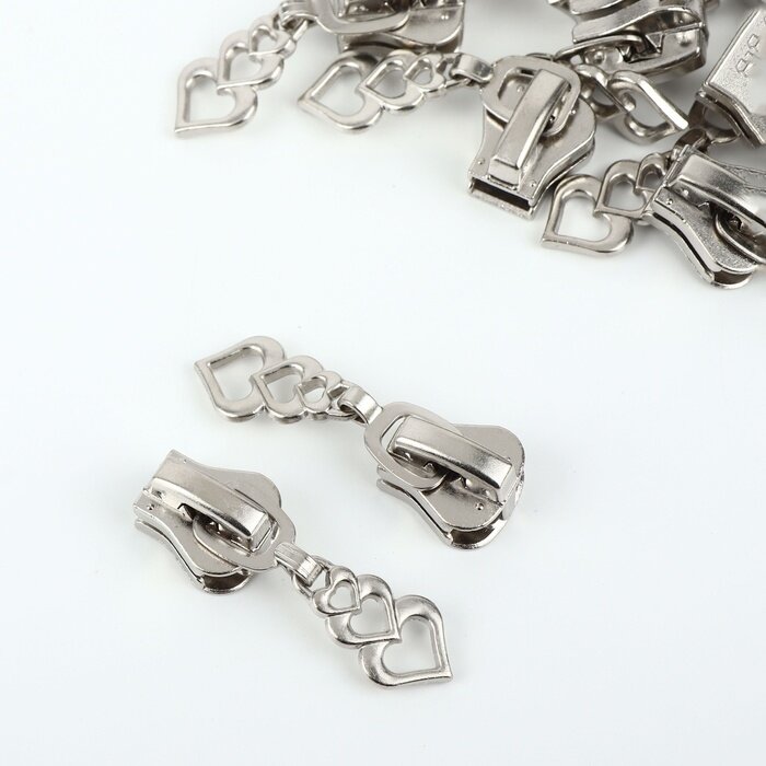 Купить Замок автоматический для молнии «Трактор», №8, декоративный «Сердца», 10 шт, цвет никель