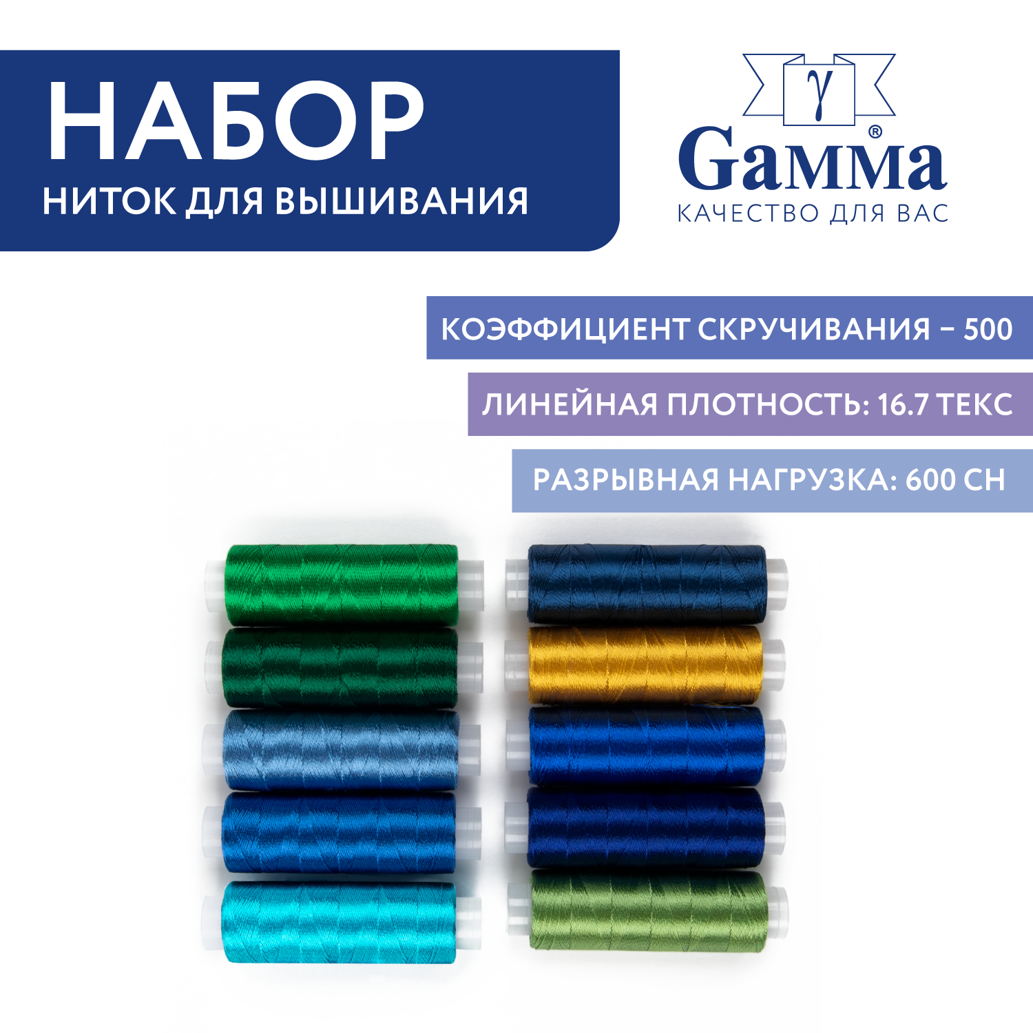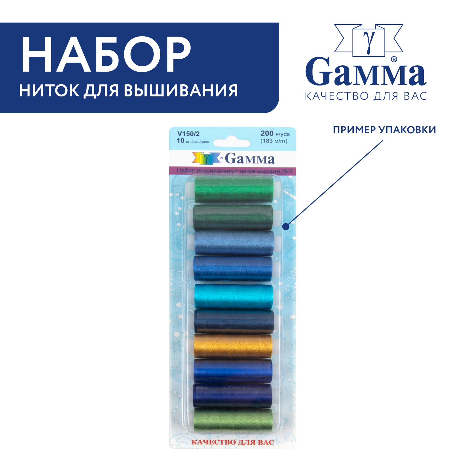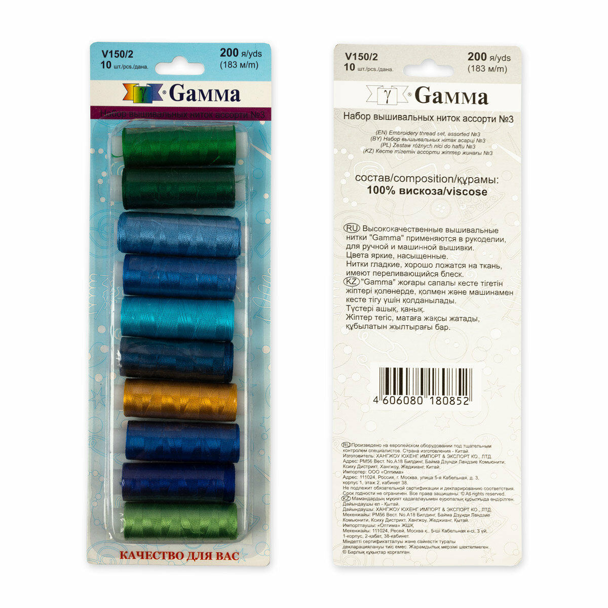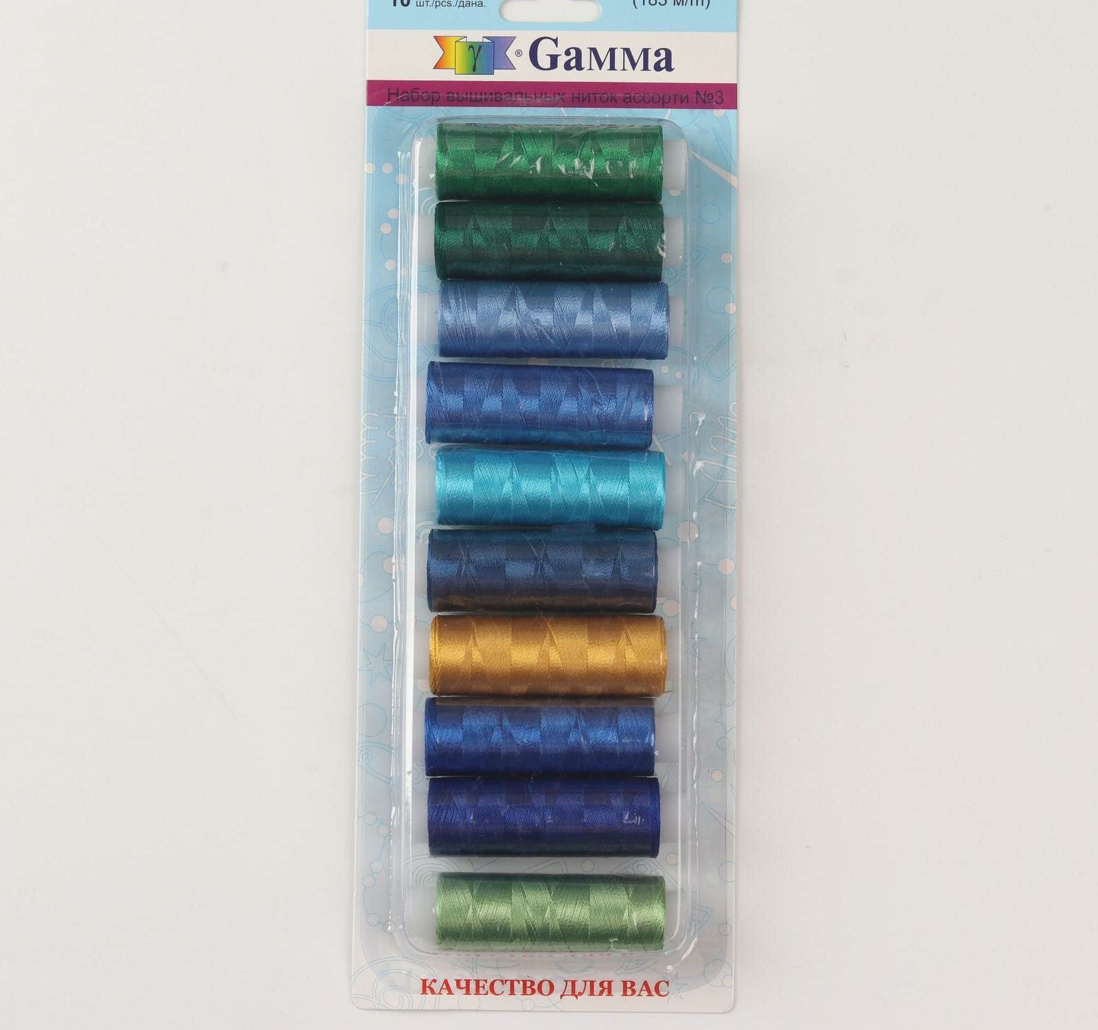 Нитки вышивальные "Gamma" ассорти V150/2 100% вискоза 10 цветов x 200 я 183 м Набор №3