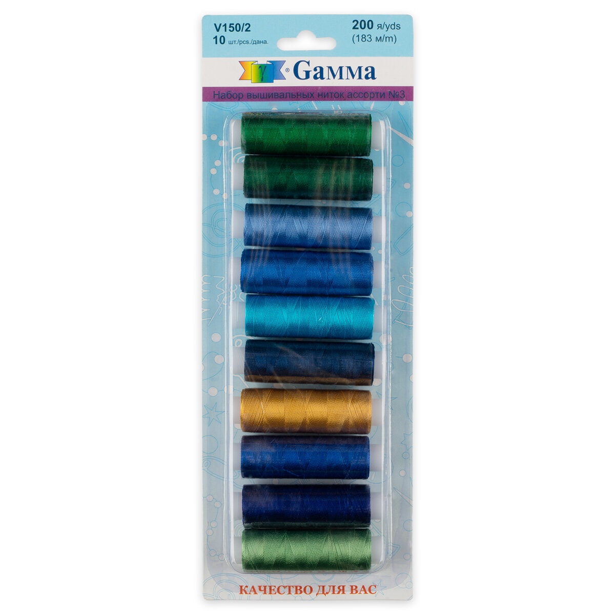 Нитки вышивальные "Gamma" ассорти V150/2 100% вискоза 10 цветов x 200 я 183 м Набор №3