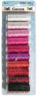 Нитки для вышивания 'Gamma' ассорти V150/2 100% вискоза 10 цв. x 183 м 200 я цвет Набор №1 интересное: