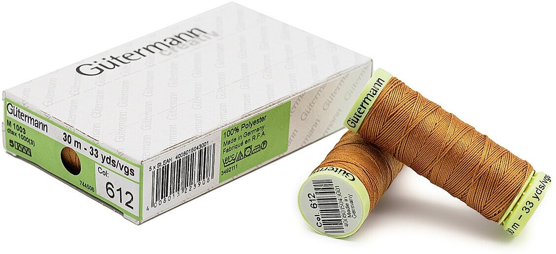 Купить Нитки швейные Top Stitch 30/30 м для декоративной отстрочки, 100% полиэстер, Gutermann 744506 (612 рыжая охра), 5 шт