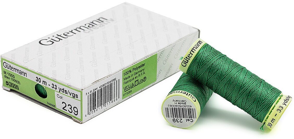 Купить Декоративная нить Gutermann Top Stitch 30/30 м для отстрочки, 100% полиэстер, цвет 239 зеленый трилистник, 5 шт (3)
