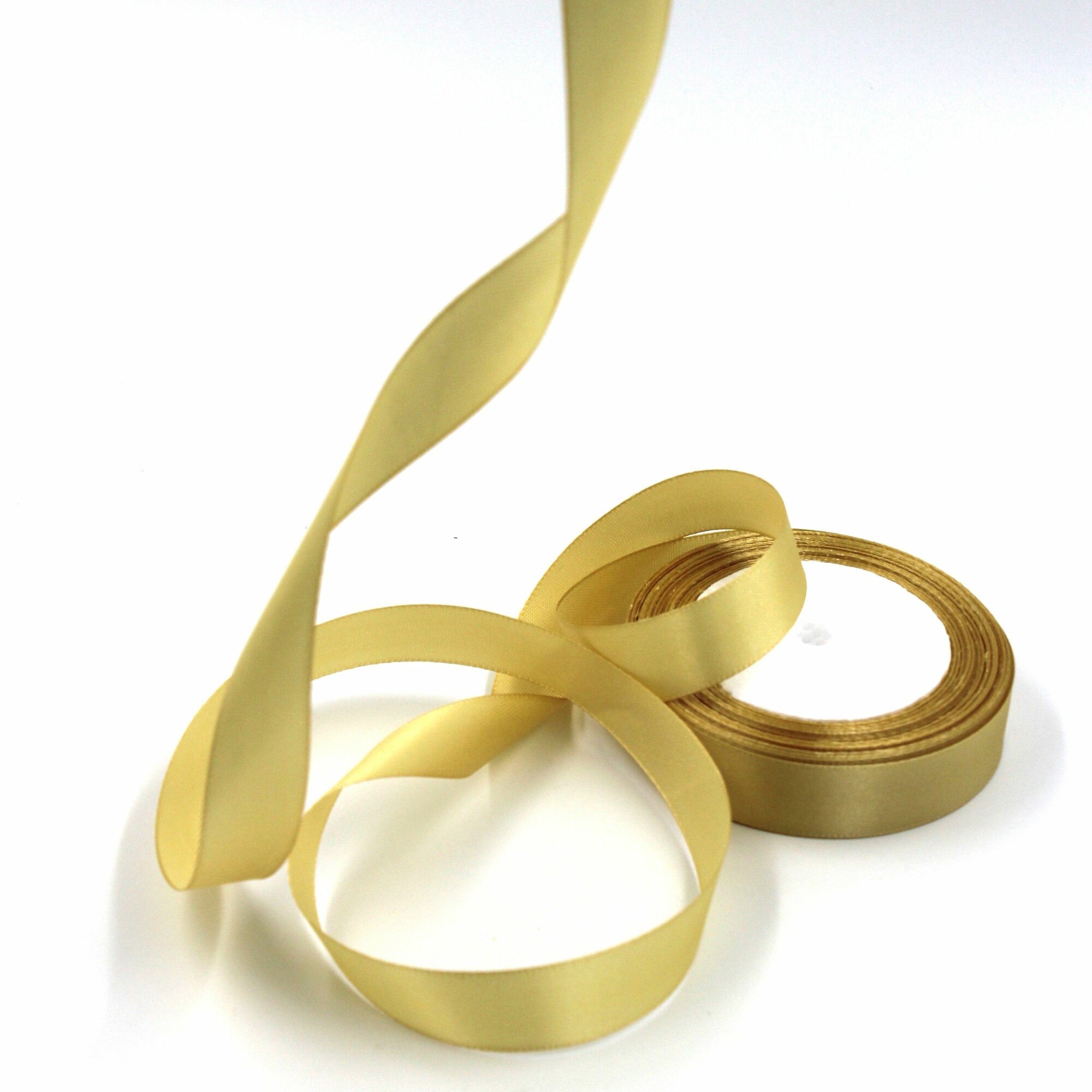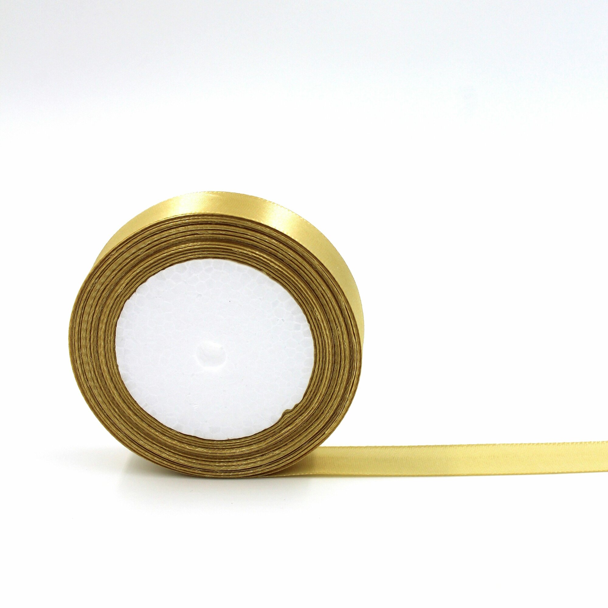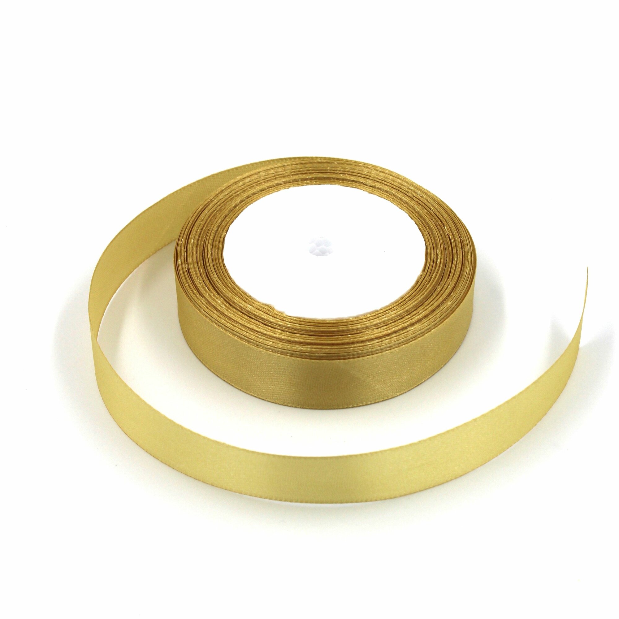 Лента атласная 1,2см х 23м золотая, упаковочная для рукоделия, для декора и творчества, шитья, упаковки и оформления подарков, 12мм