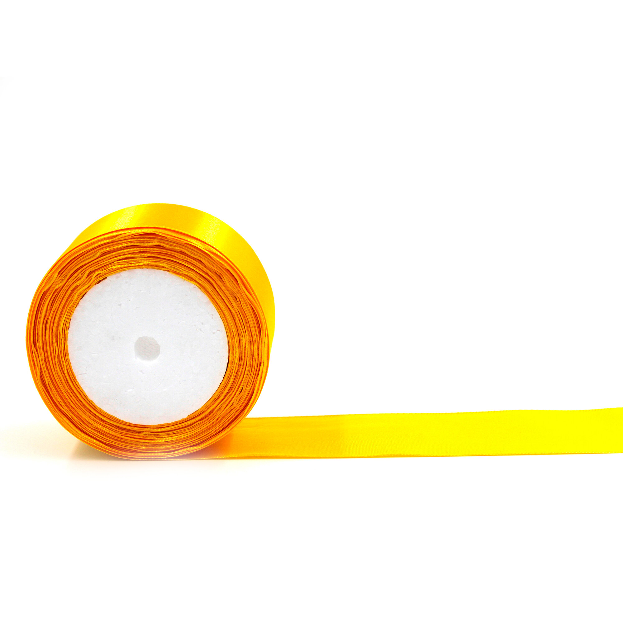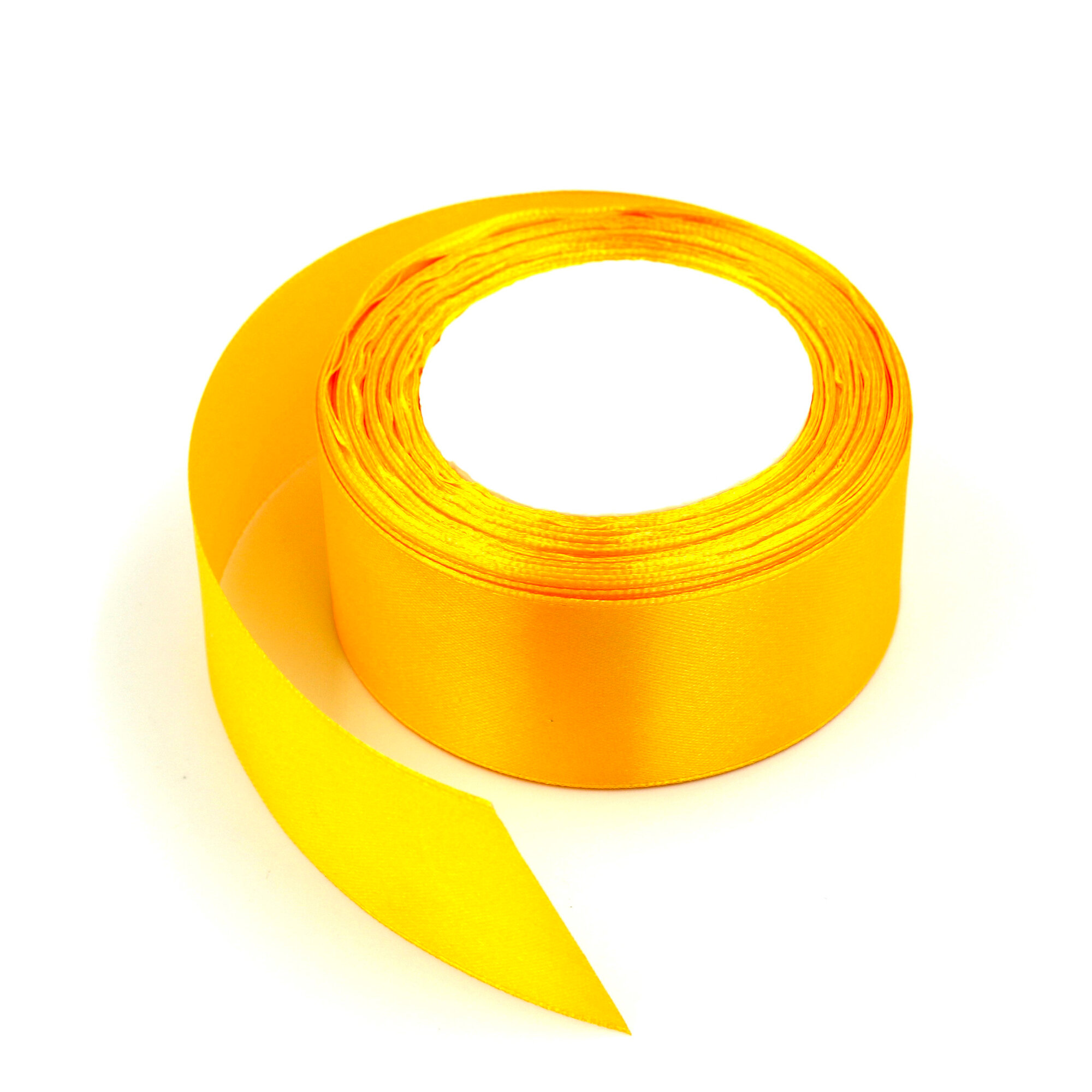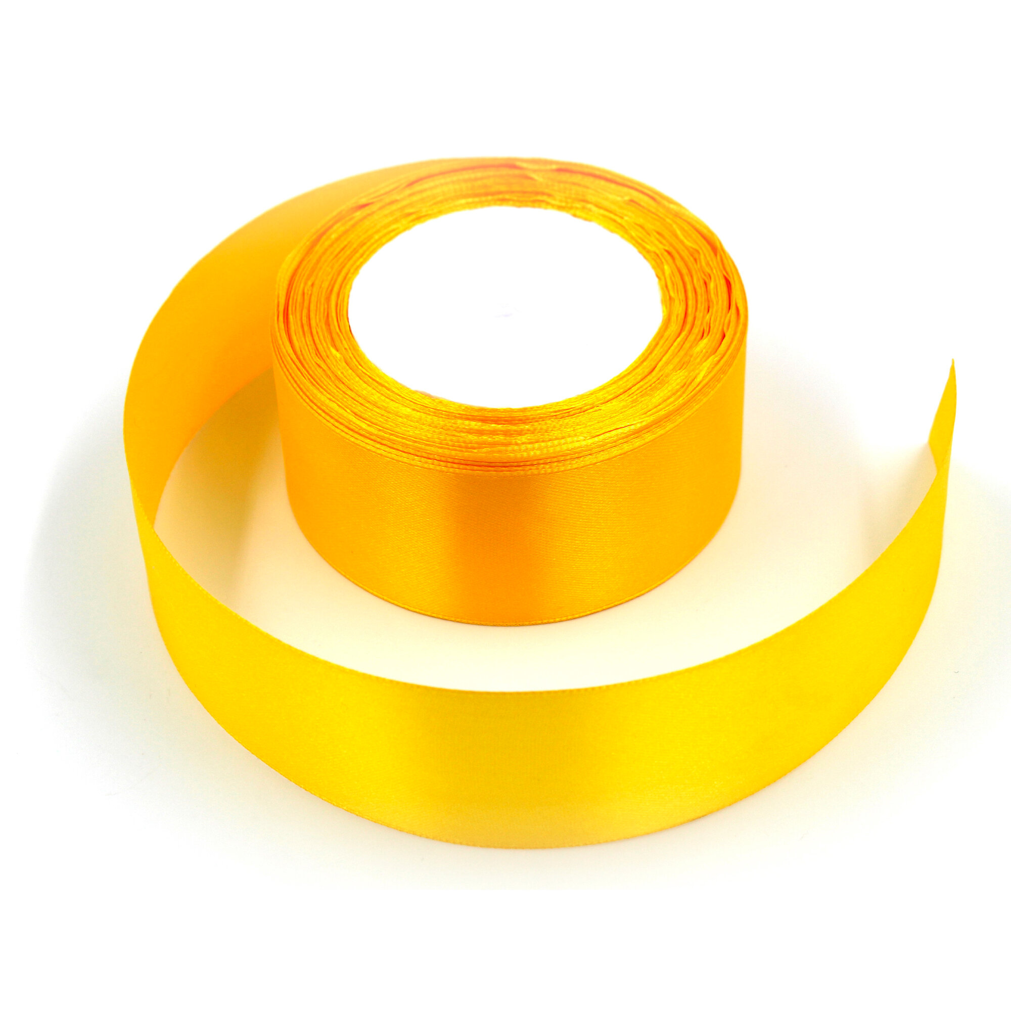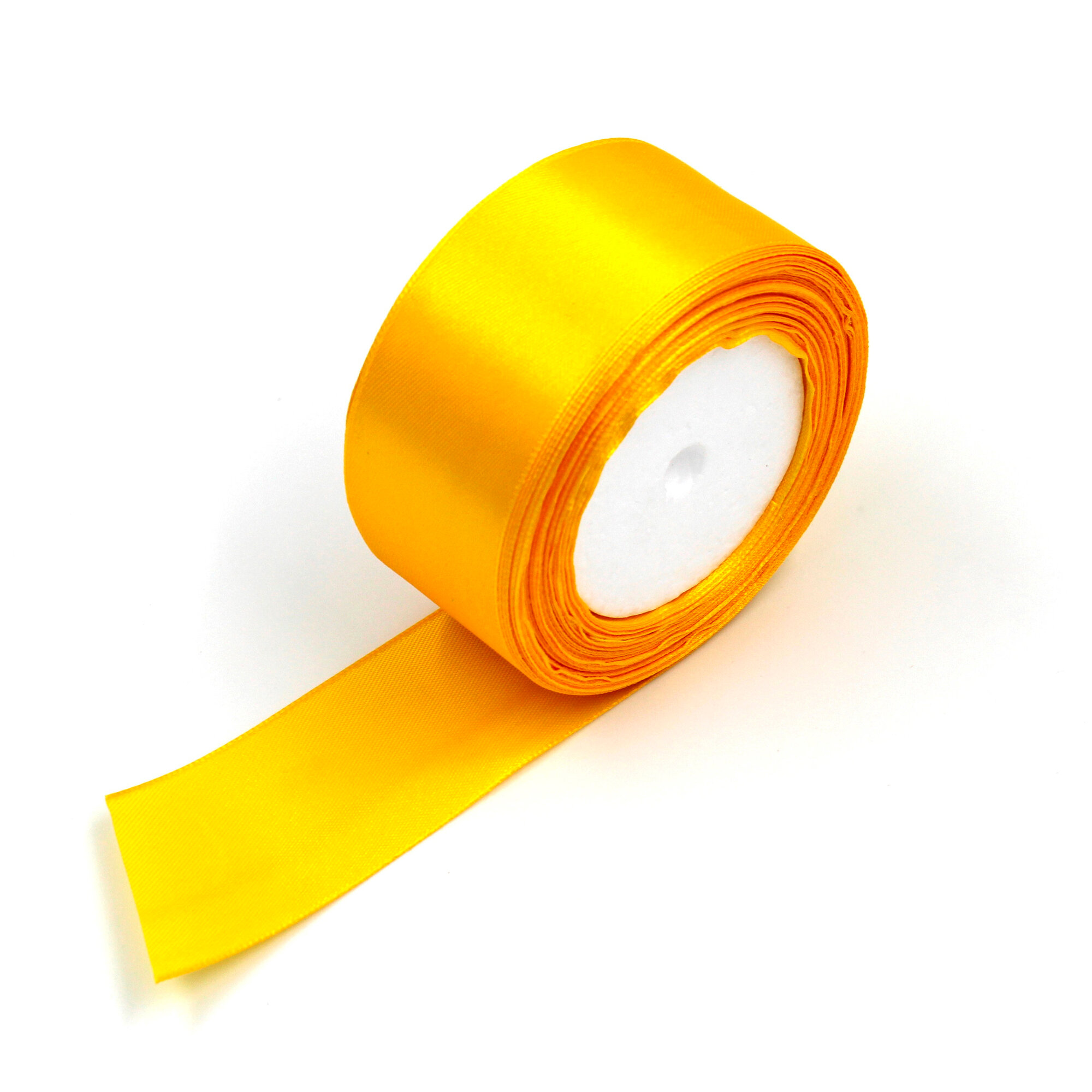 Лента атласная 2,5см х 23м жёлтая, упаковочная для рукоделия, для декора и творчества, шитья, упаковки и оформления подарков, 25мм