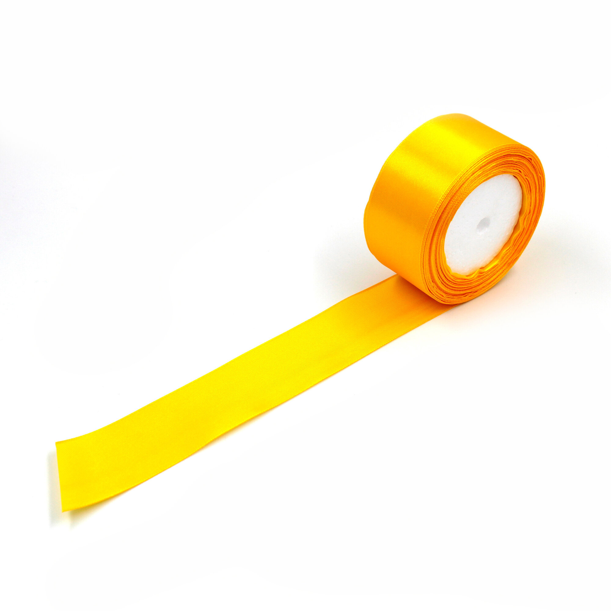 Лента атласная 5см х 23м жёлтая, упаковочная для рукоделия, для декора и творчества, шитья, упаковки и оформления подарков, 50мм