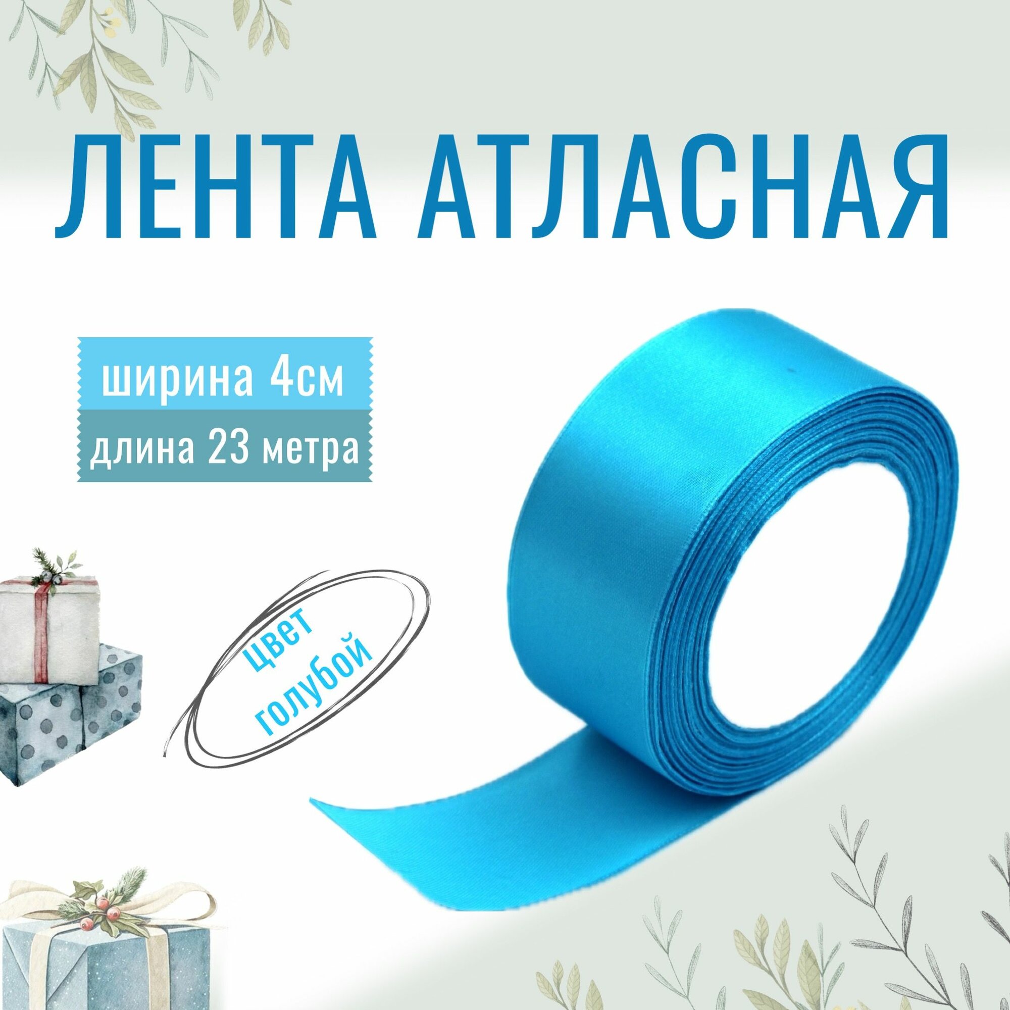 Купить Лента атласная 4см х 23м голубая, упаковочная для рукоделия, для декора и творчества, шитья, упаковки и оформления подарков, 40мм