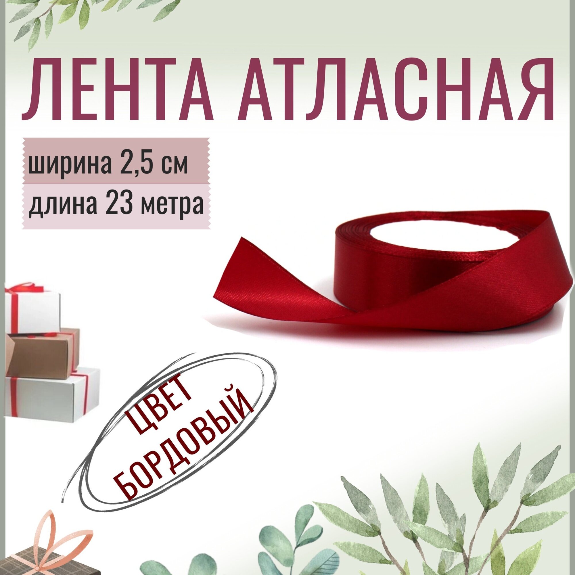 Лента атласная 2,5см х 23м бордовая, упаковочная для рукоделия, для декора и творчества, шитья, упаковки и оформления подарков, 25мм