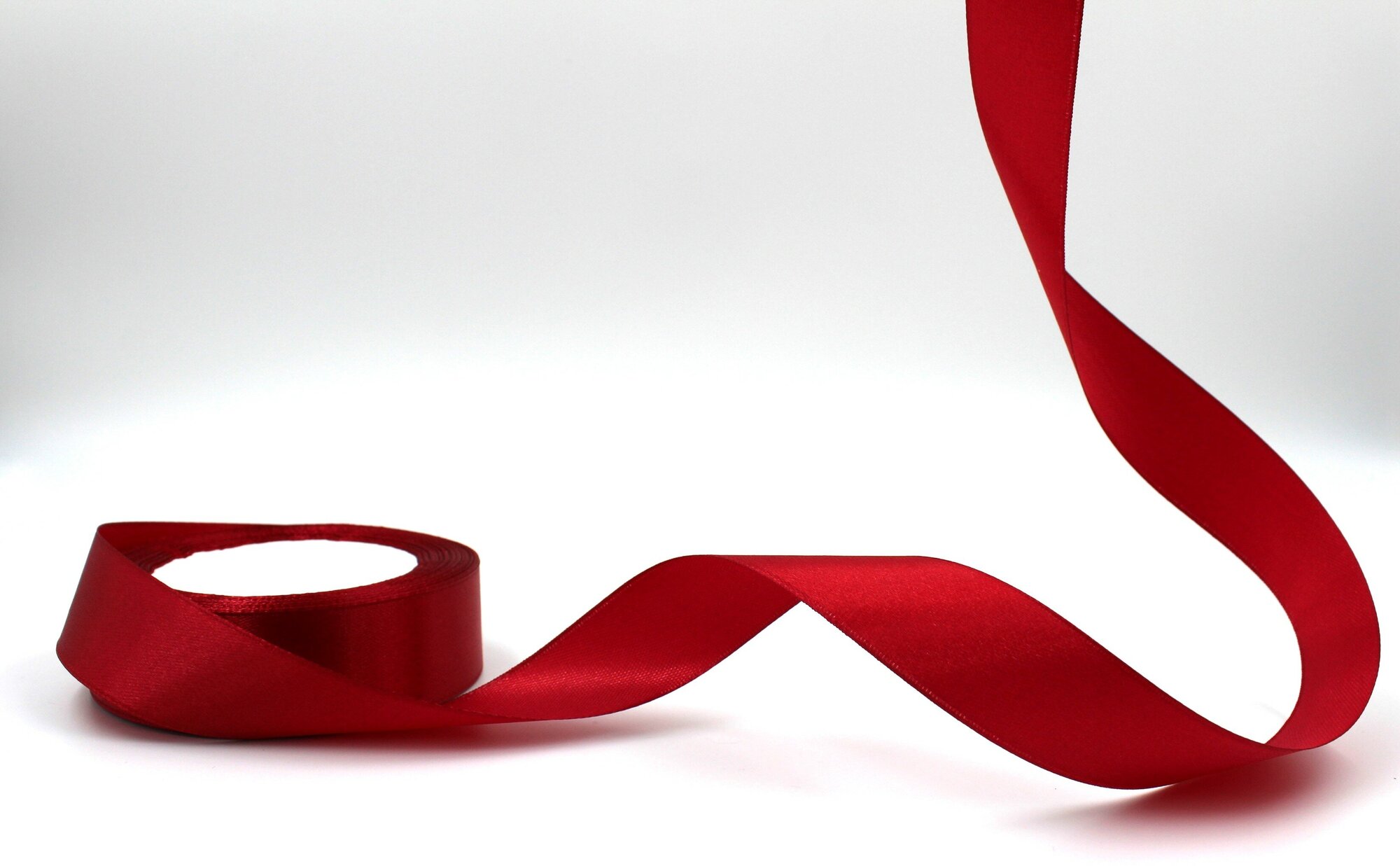 Лента атласная 1см х 23м красная, упаковочная для рукоделия, для декора и творчества, шитья, упаковки и оформления подарков, 10мм