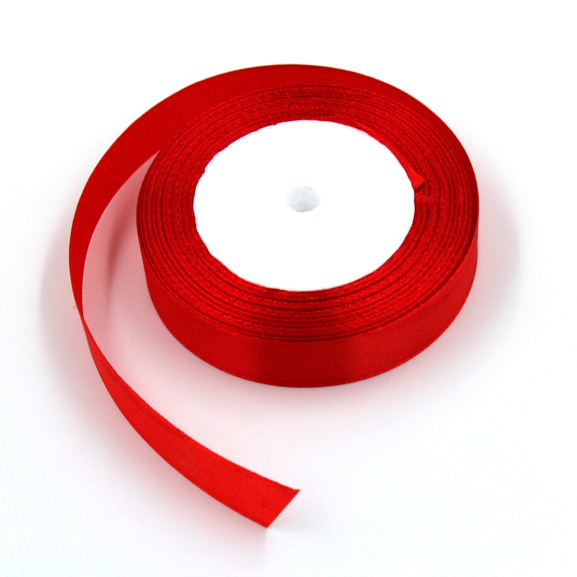 Лента атласная 1см х 23м красная, упаковочная для рукоделия, для декора и творчества, шитья, упаковки и оформления подарков, 10мм
