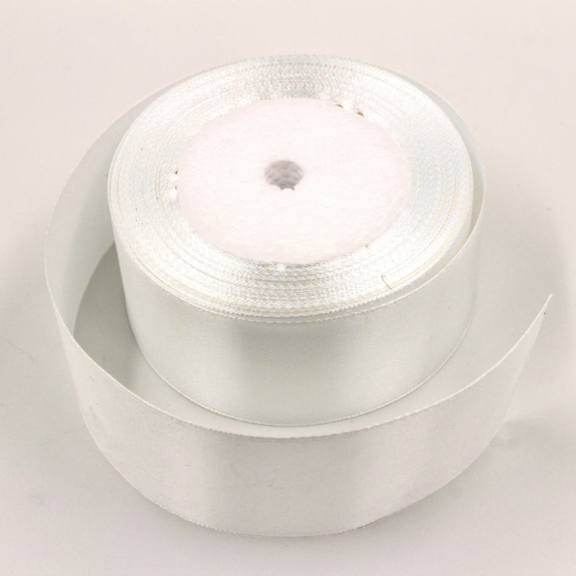 Лента атласная 2,5см х 23м белая, упаковочная для рукоделия, для декора и творчества, шитья, упаковки и оформления подарков, 25мм