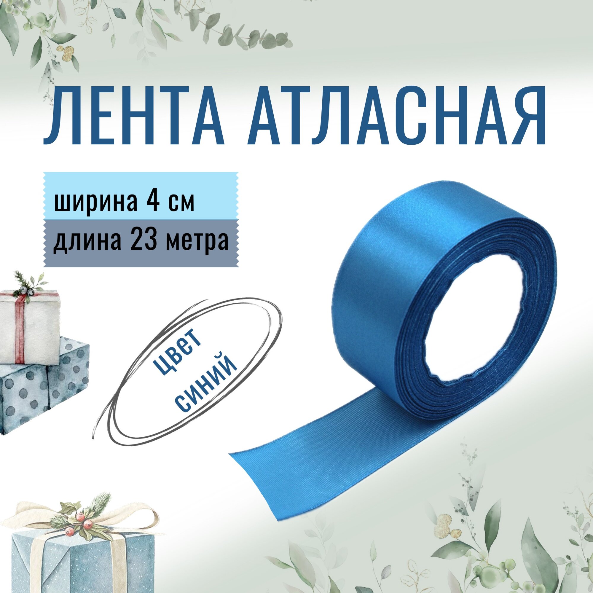 Купить Лента атласная 4см х 23м синяя, для декора и творчества, шитья, упаковки и оформления подарков, 40мм