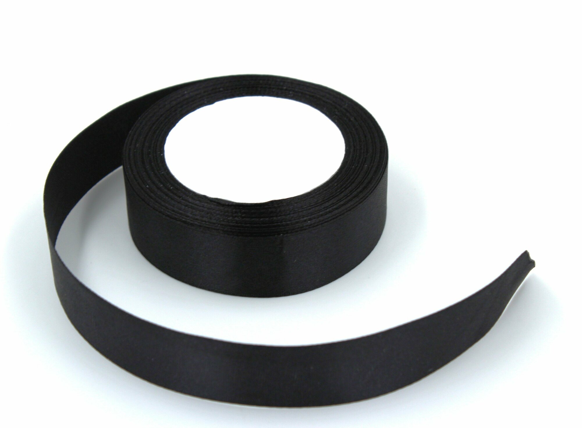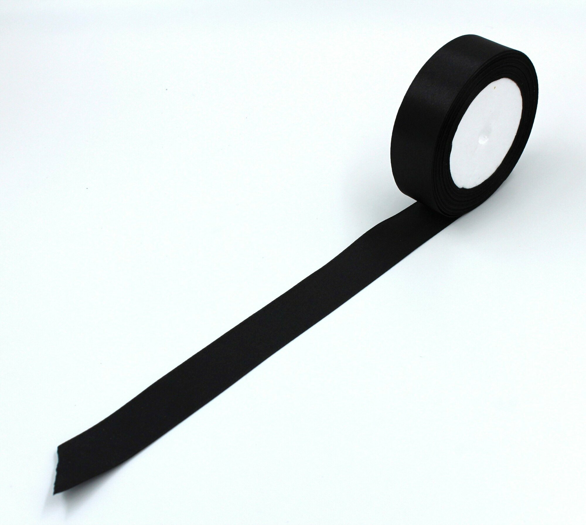 Лента атласная 2,5см х 23м черная, упаковочная для рукоделия, для декора и творчества, шитья, упаковки и оформления подарков, 25мм