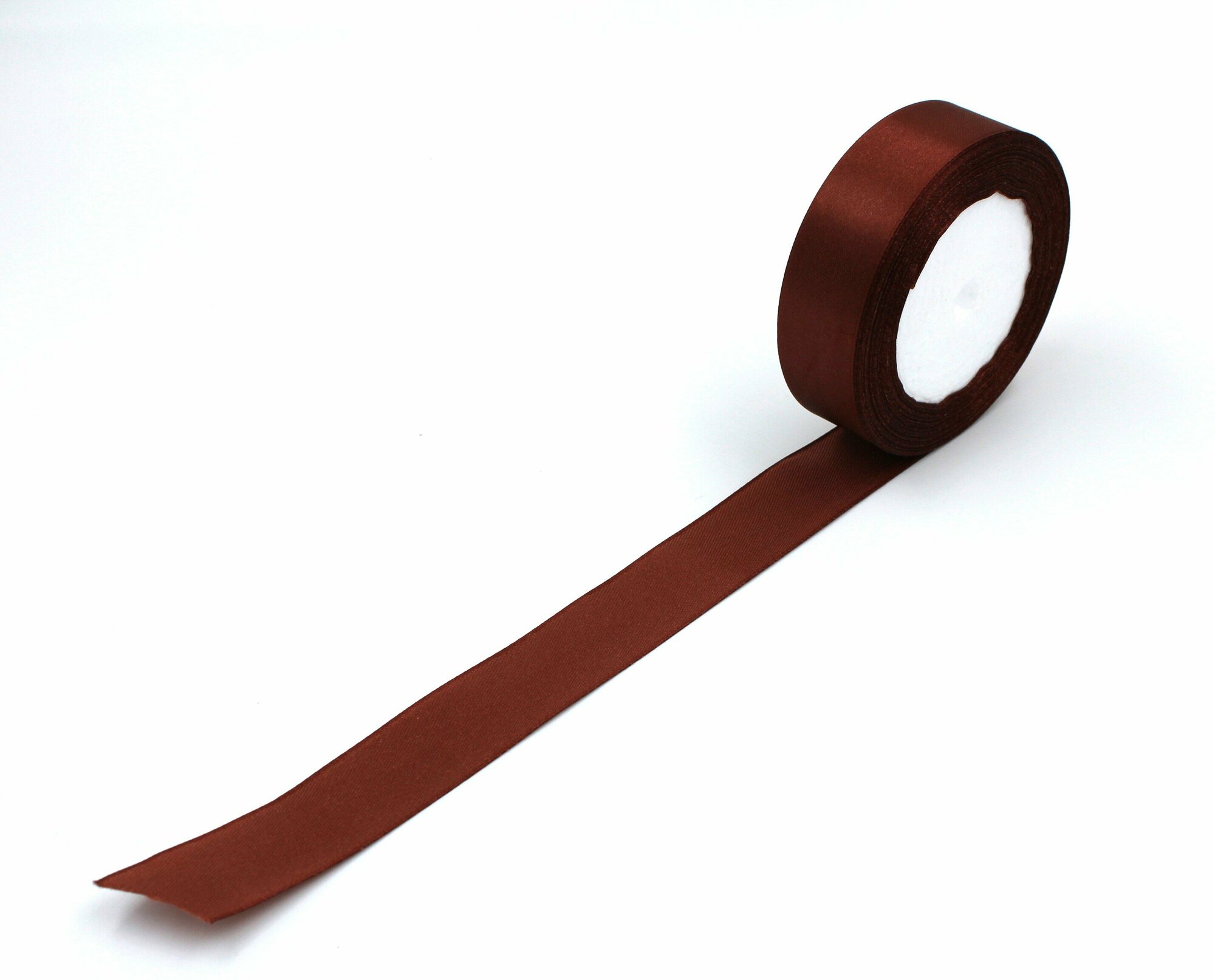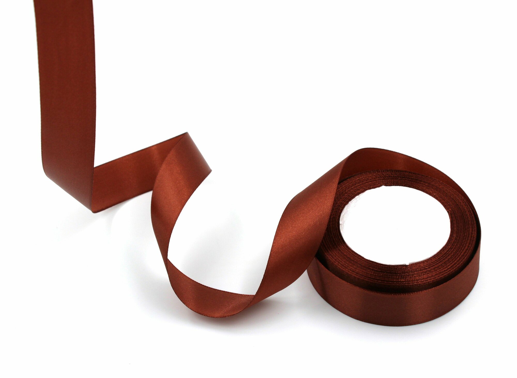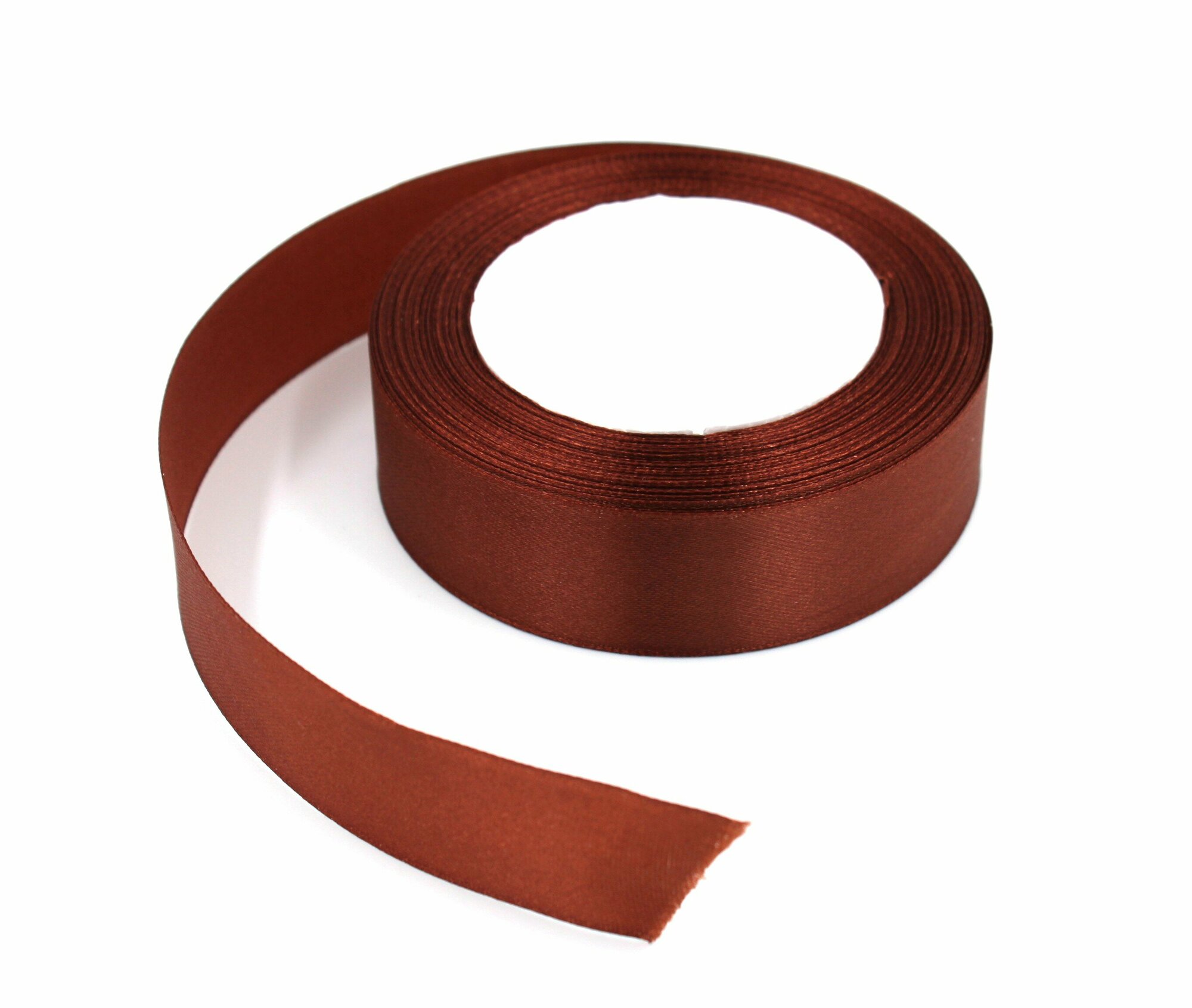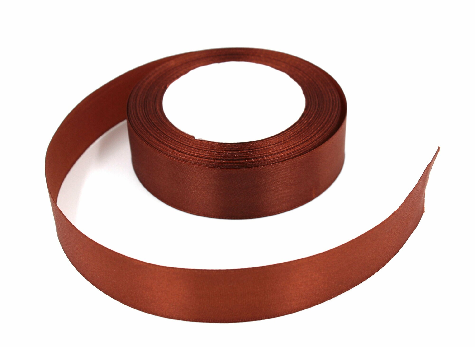 Лента атласная 2,5см х 23м коричневая, упаковочная для рукоделия, для декора и творчества, шитья, упаковки и оформления подарков, 25мм