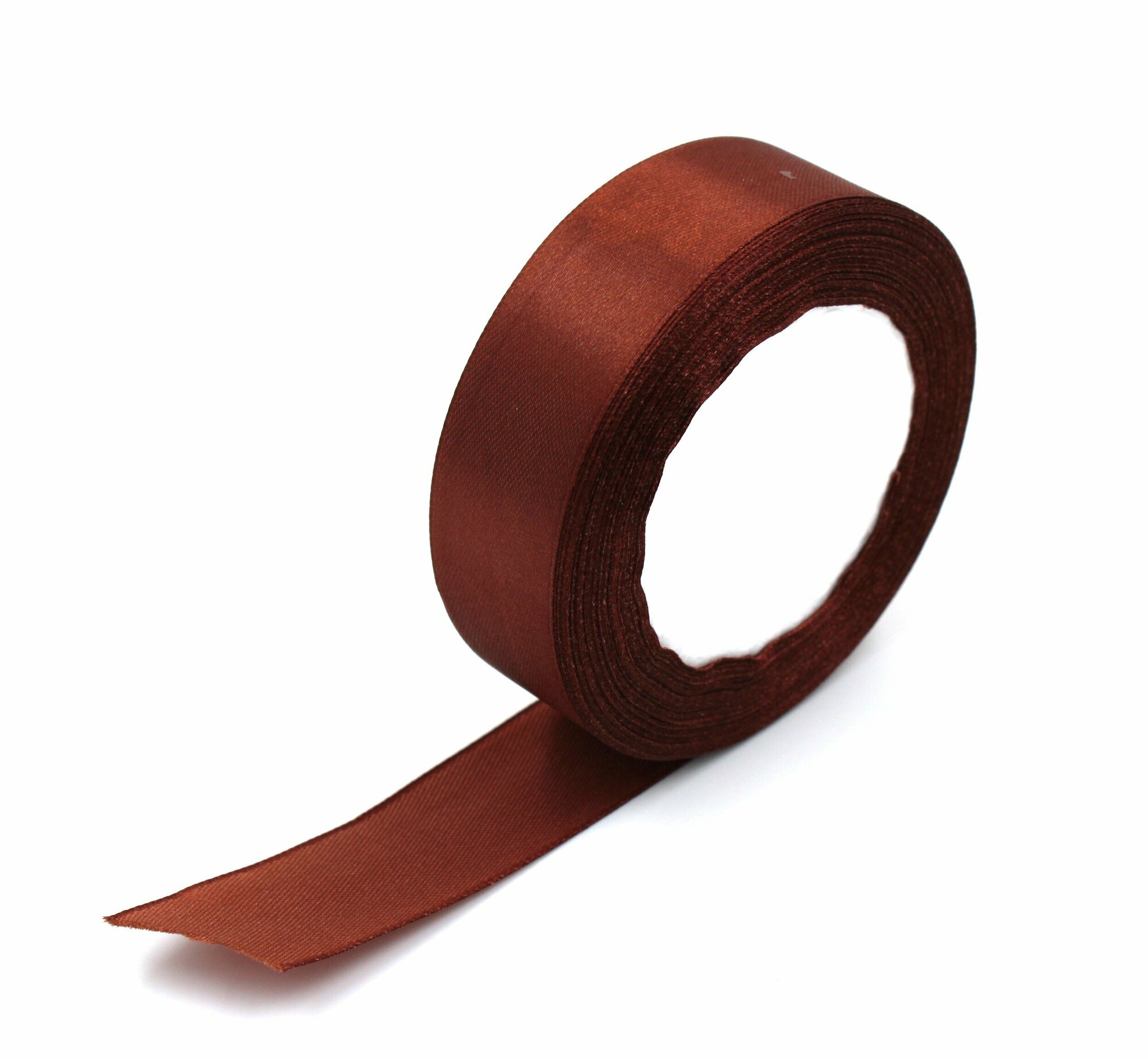 Лента атласная 1,2см х 23м коричневая, упаковочная для рукоделия, для декора и творчества, шитья, упаковки и оформления подарков, 12мм