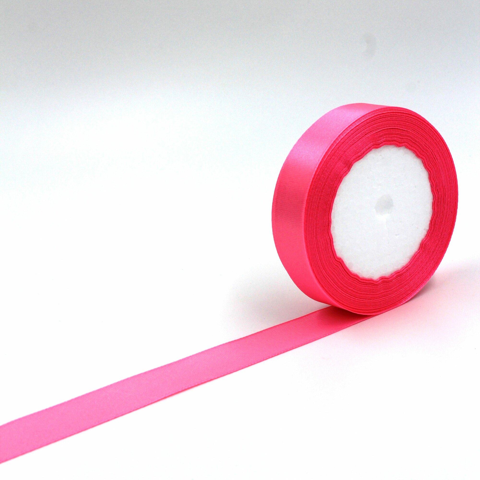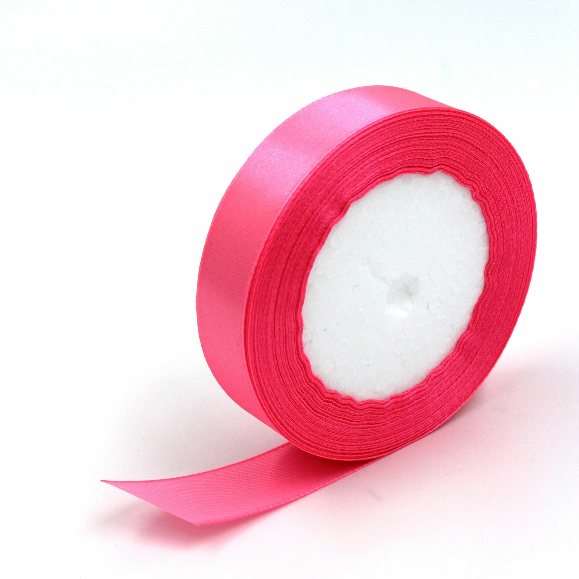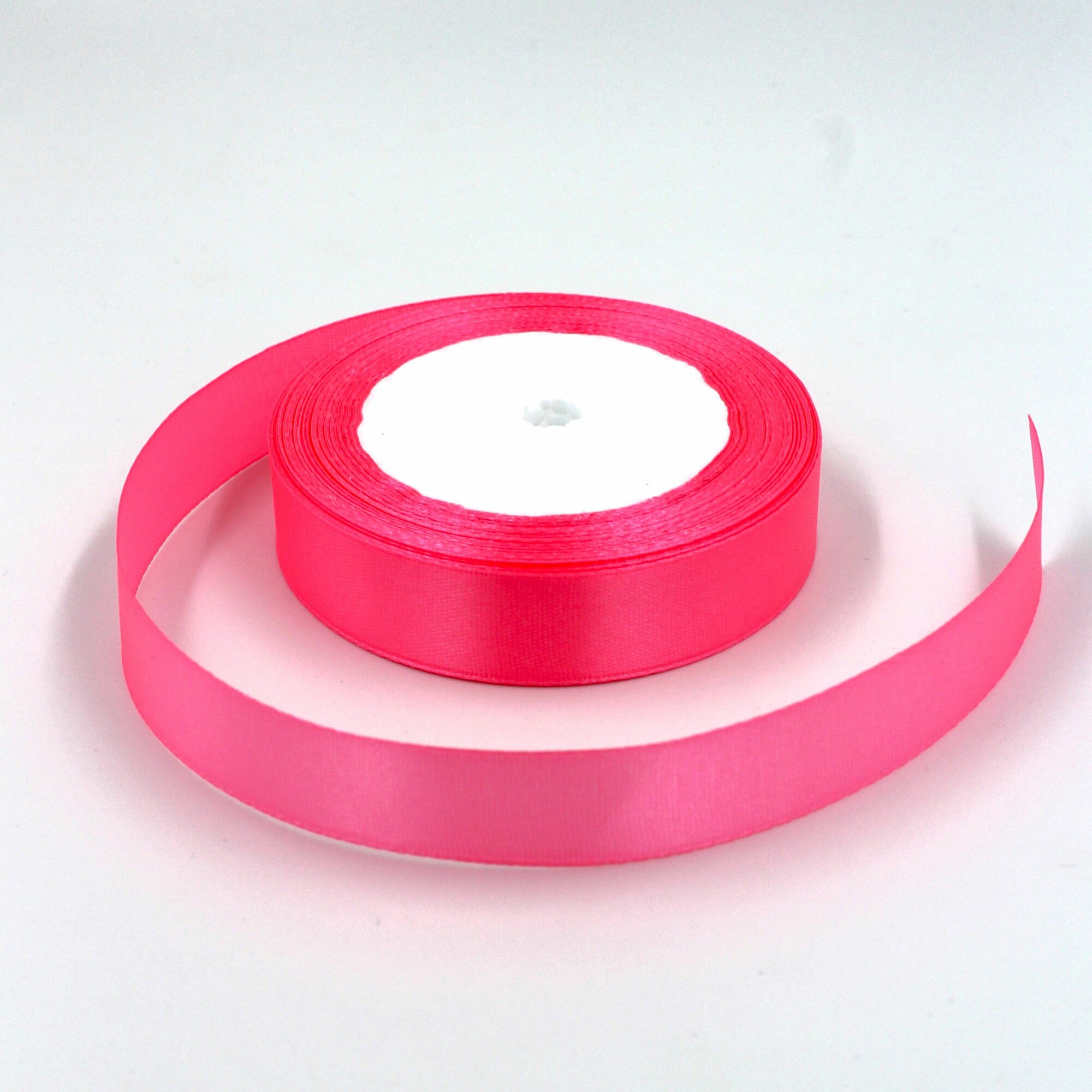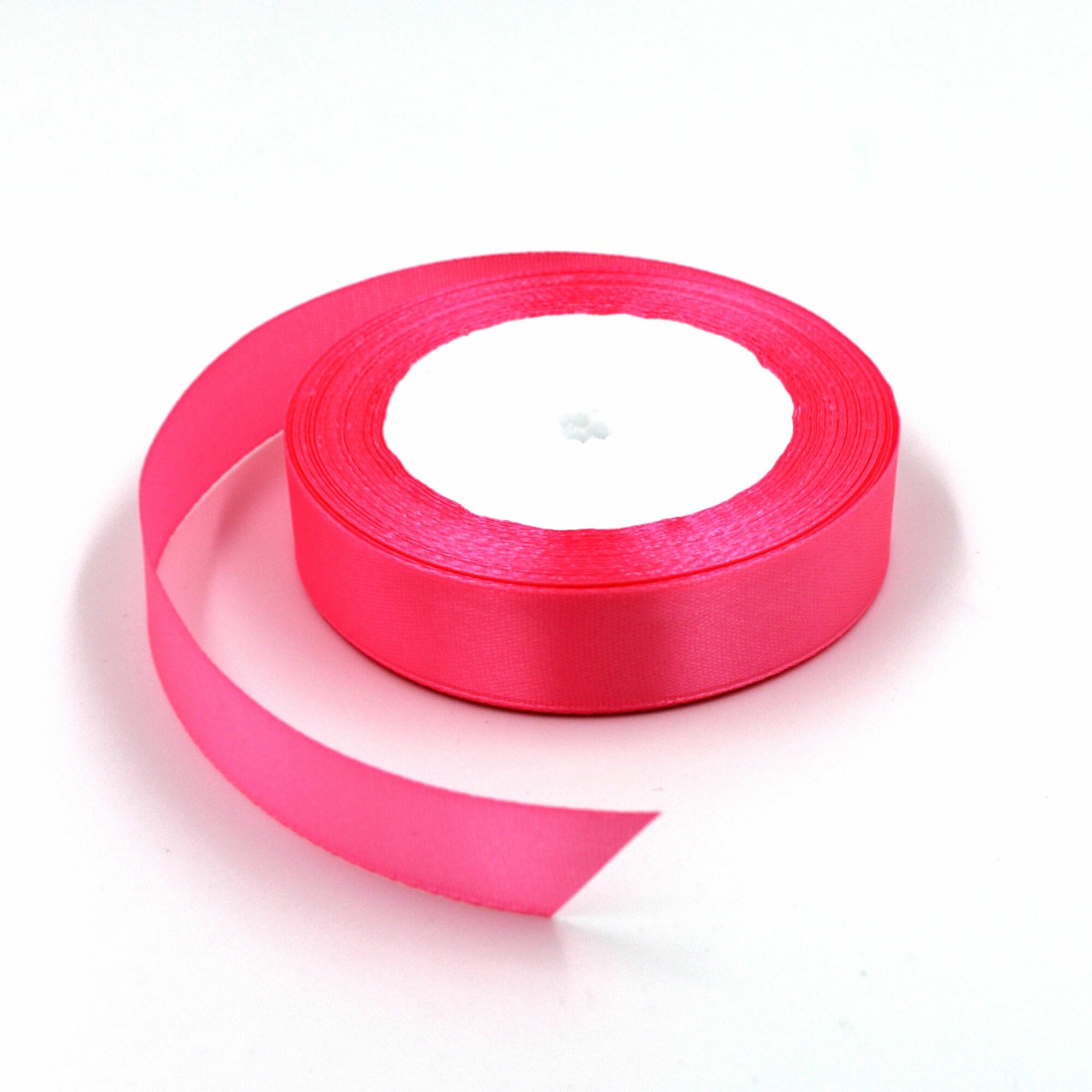 Лента атласная 1см х 23м розовая (яркая), упаковочная для рукоделия, для декора и творчества, шитья, упаковки и оформления подарков, 10мм