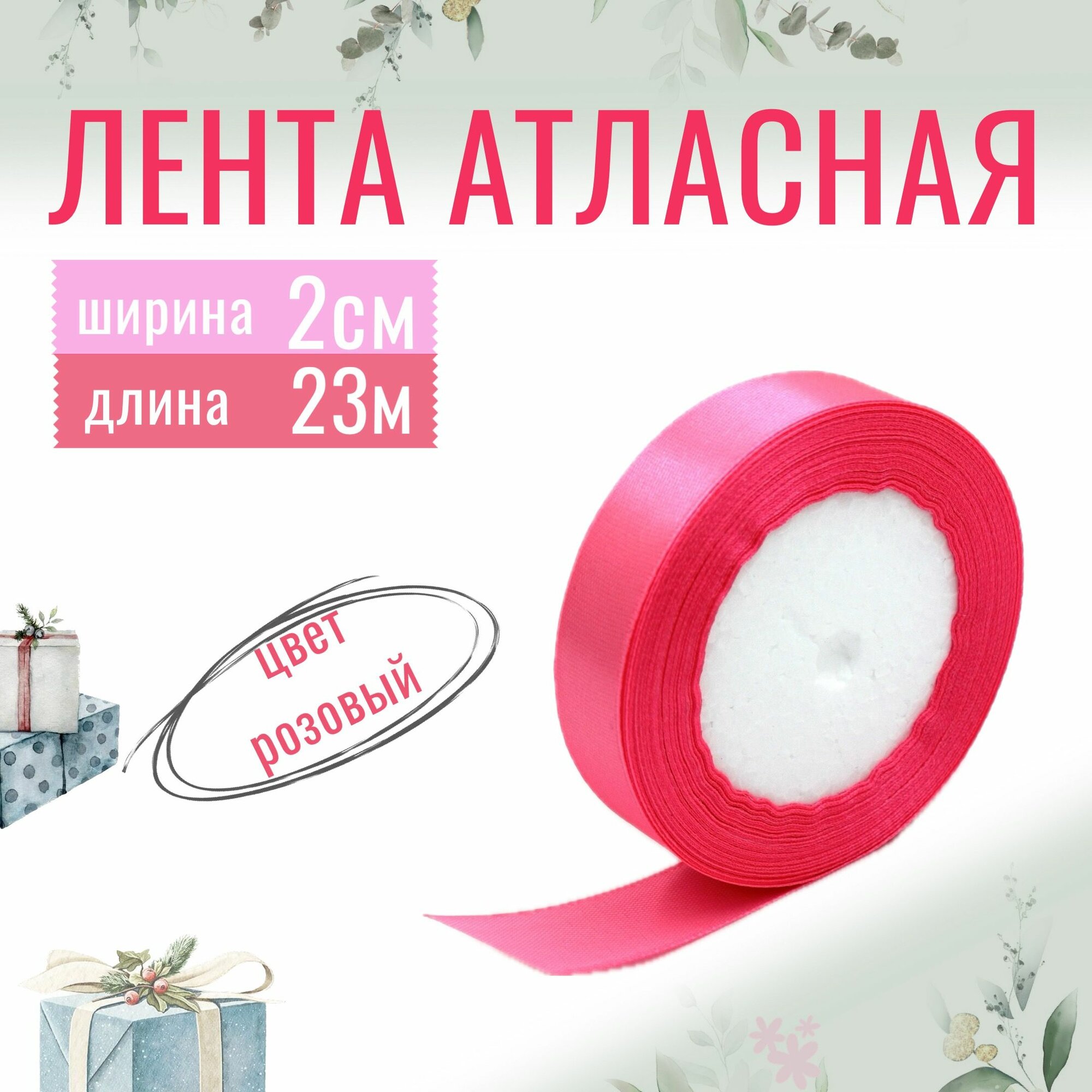 СохранитьЛента атласная 2см х 23м розовая, упаковочная для рукоделия, для декора и творчества, шитья, упаковки и оформления подарков, 20мм интересное:
