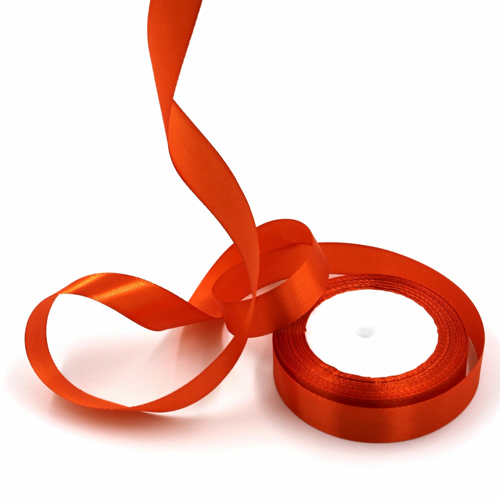 Лента атласная 1см х 23м оранжевая, упаковочная для рукоделия, для декора и творчества, шитья, упаковки и оформления подарков, 10мм