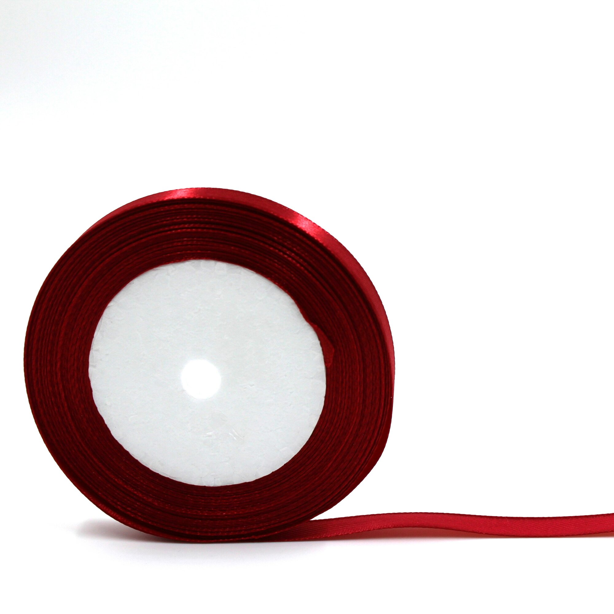 Лента атласная 1см х 23м бордовая, упаковочная для рукоделия, для декора и творчества, шитья, упаковки и оформления подарков, 10мм