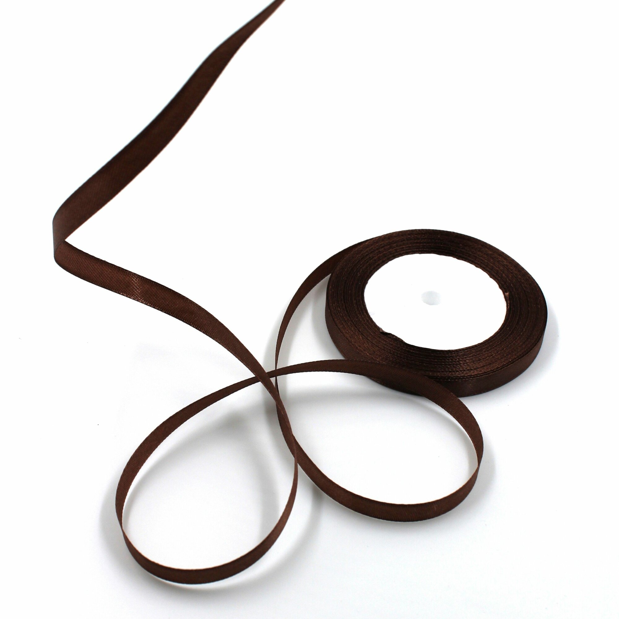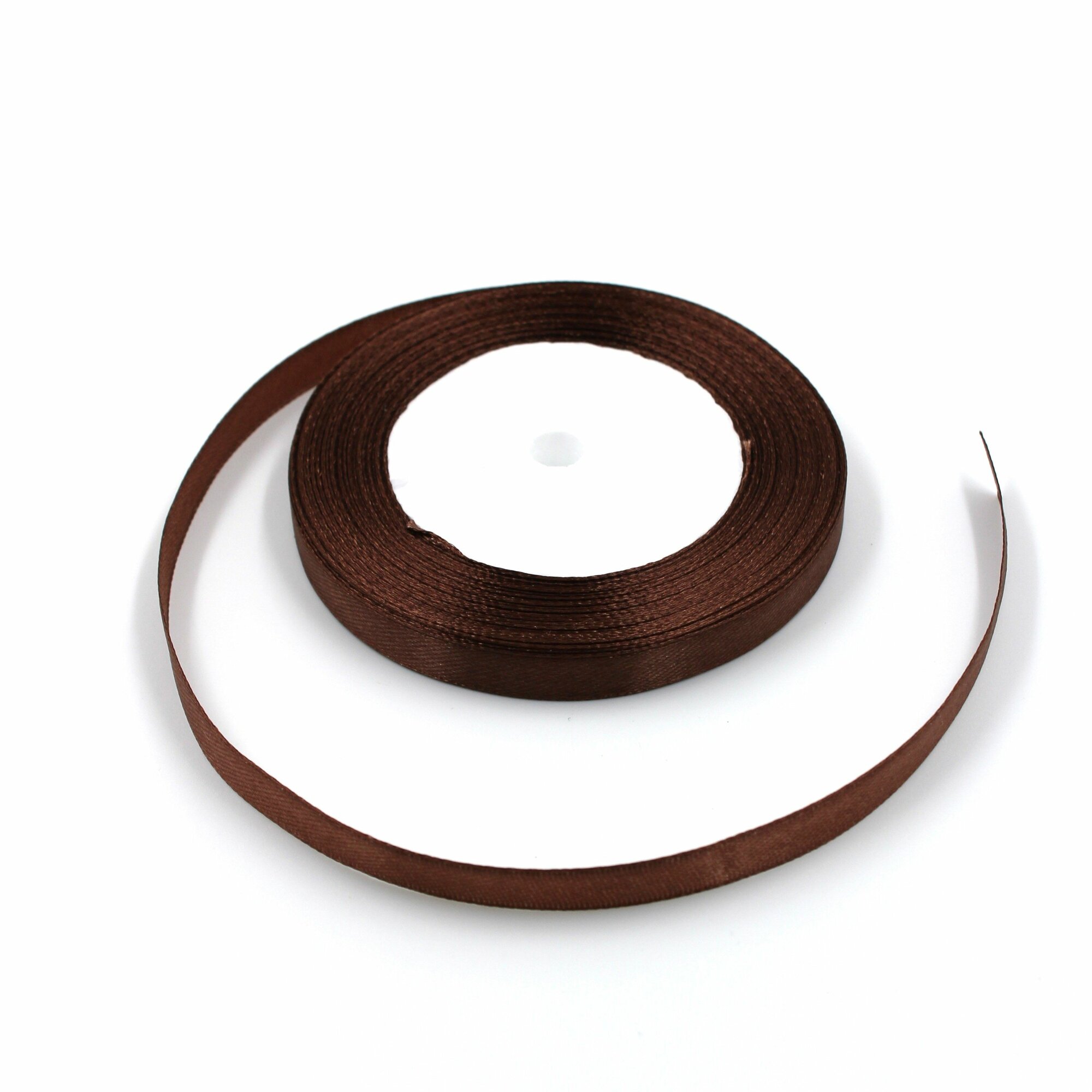 Лента атласная 1,2см х 23м коричневая, упаковочная для рукоделия, для декора и творчества, шитья, упаковки и оформления подарков, 12мм