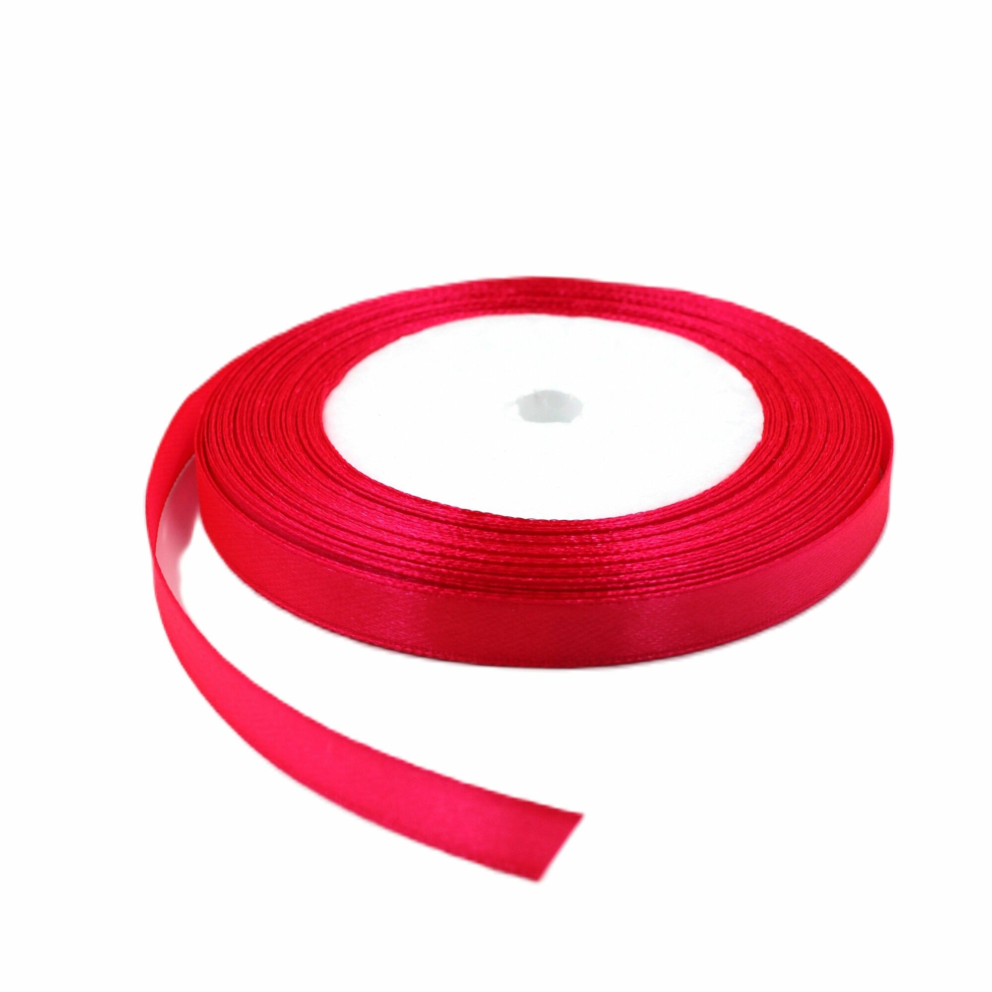 Лента атласная 1см х 23м красная, упаковочная для рукоделия, для декора и творчества, шитья, упаковки и оформления подарков, 10мм