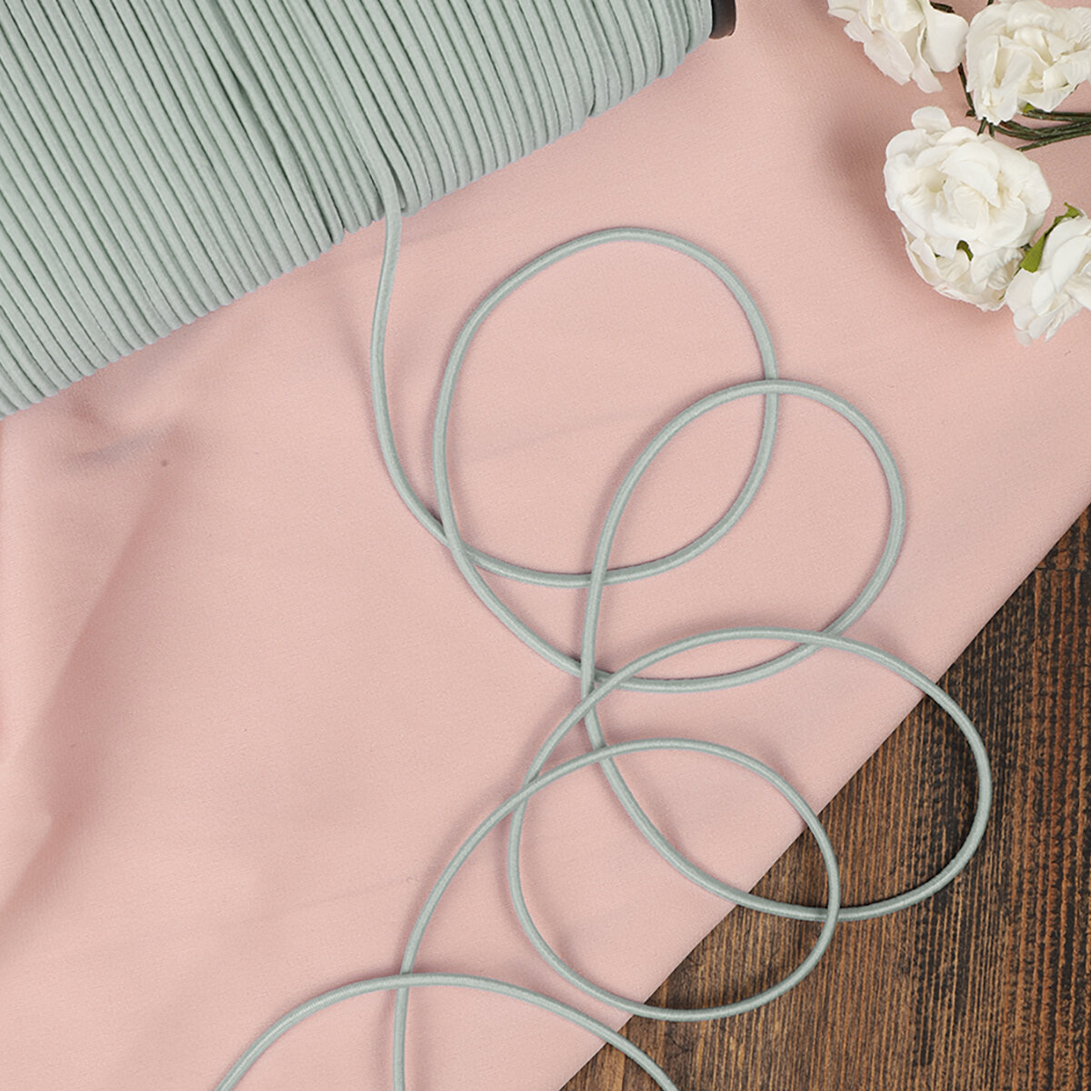 Резинка TBY шляпная (шнур круглый) цв.F310 св.серый 2мм рул.100м