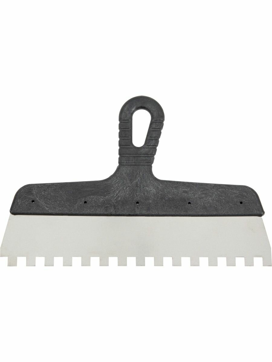 Зубчатый шпатель КЭС 10x10 мм, нержавеющая сталь, пластиковая рукоятка, 300 мм 10000056