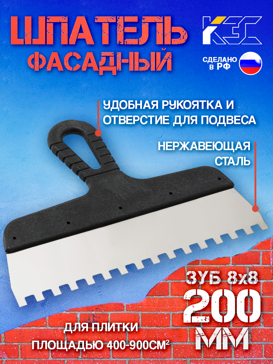 КЭС Шпатель зубчатый 8x8 мм, нержавеющая сталь, пластиковая рукоятка, 250 мм 10000048
