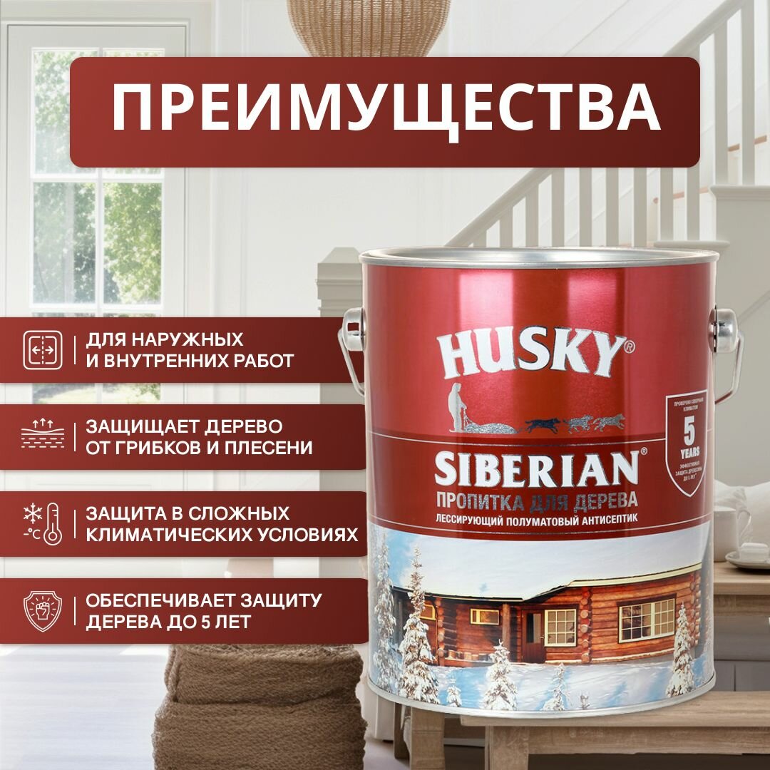 Антисептик Husky Siberian полуматовый, рябина 2,7 л