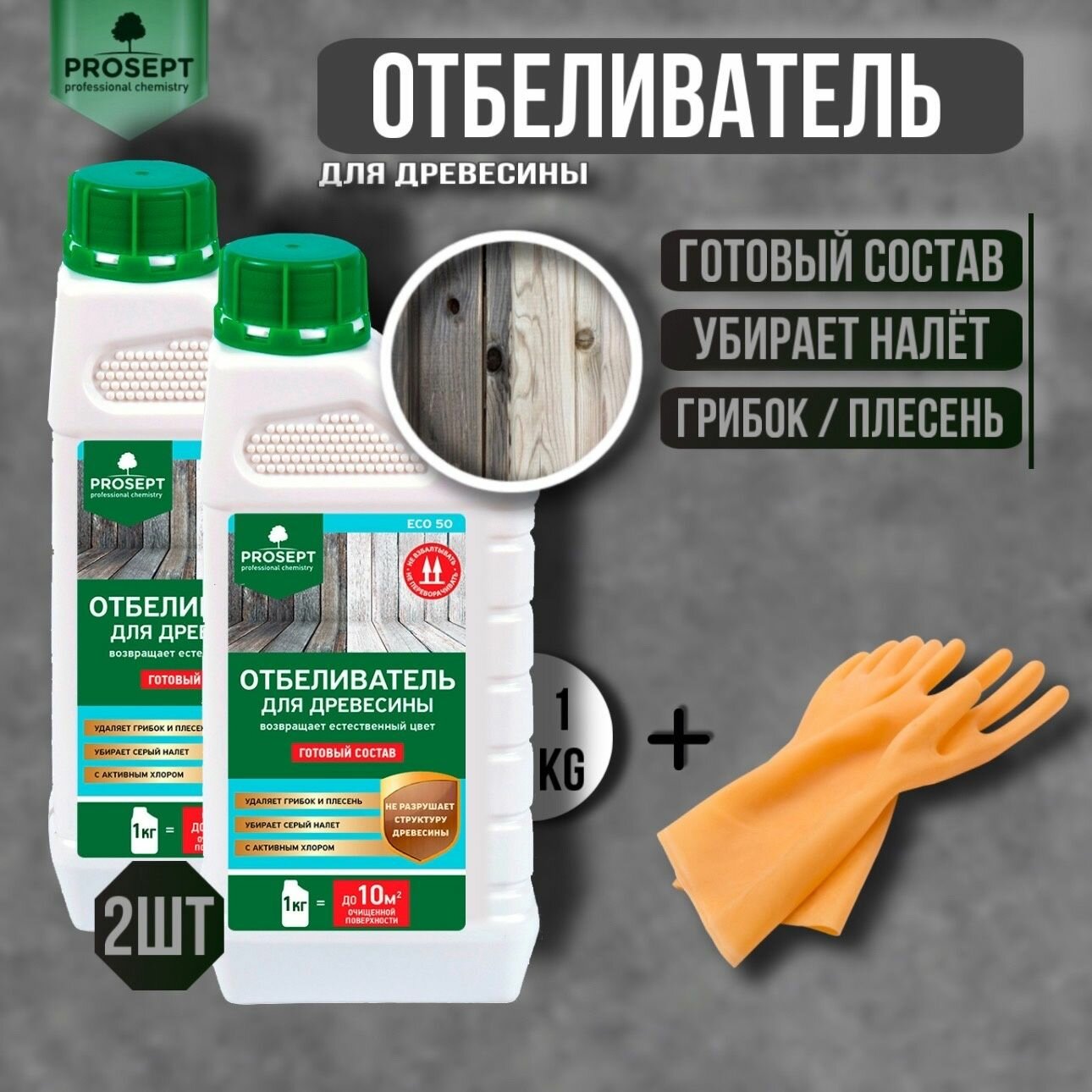 Купить Отбеливатель 2 штуки для древесины PROSEPT ECO 50 готовый состав 1 литр + перчатки для защиты рук