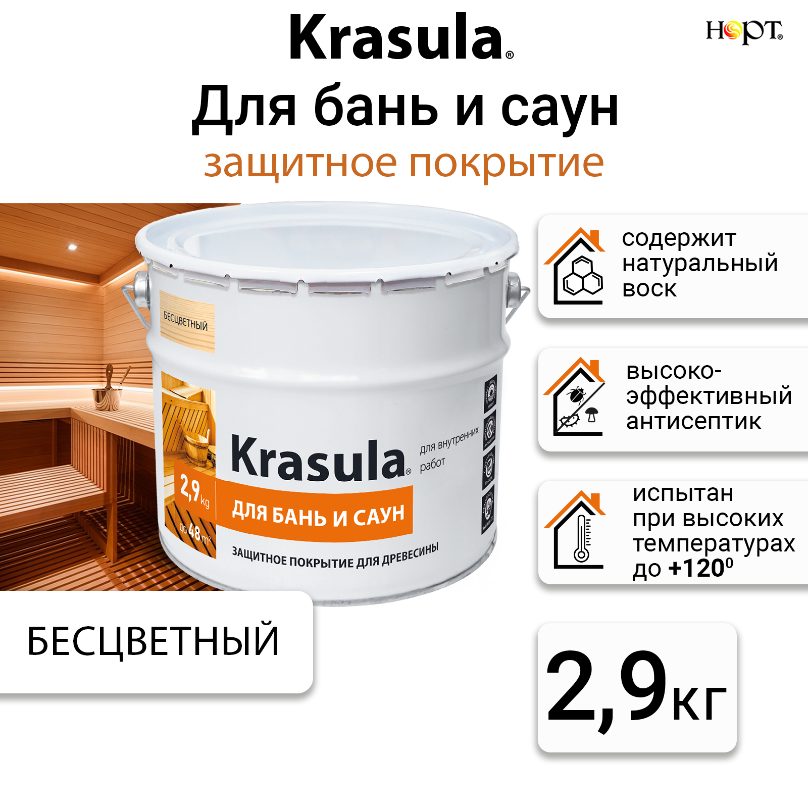 Krasula 2.9 л, Красула для бань и саун, защитно-декоративный состав пропитка для древесины