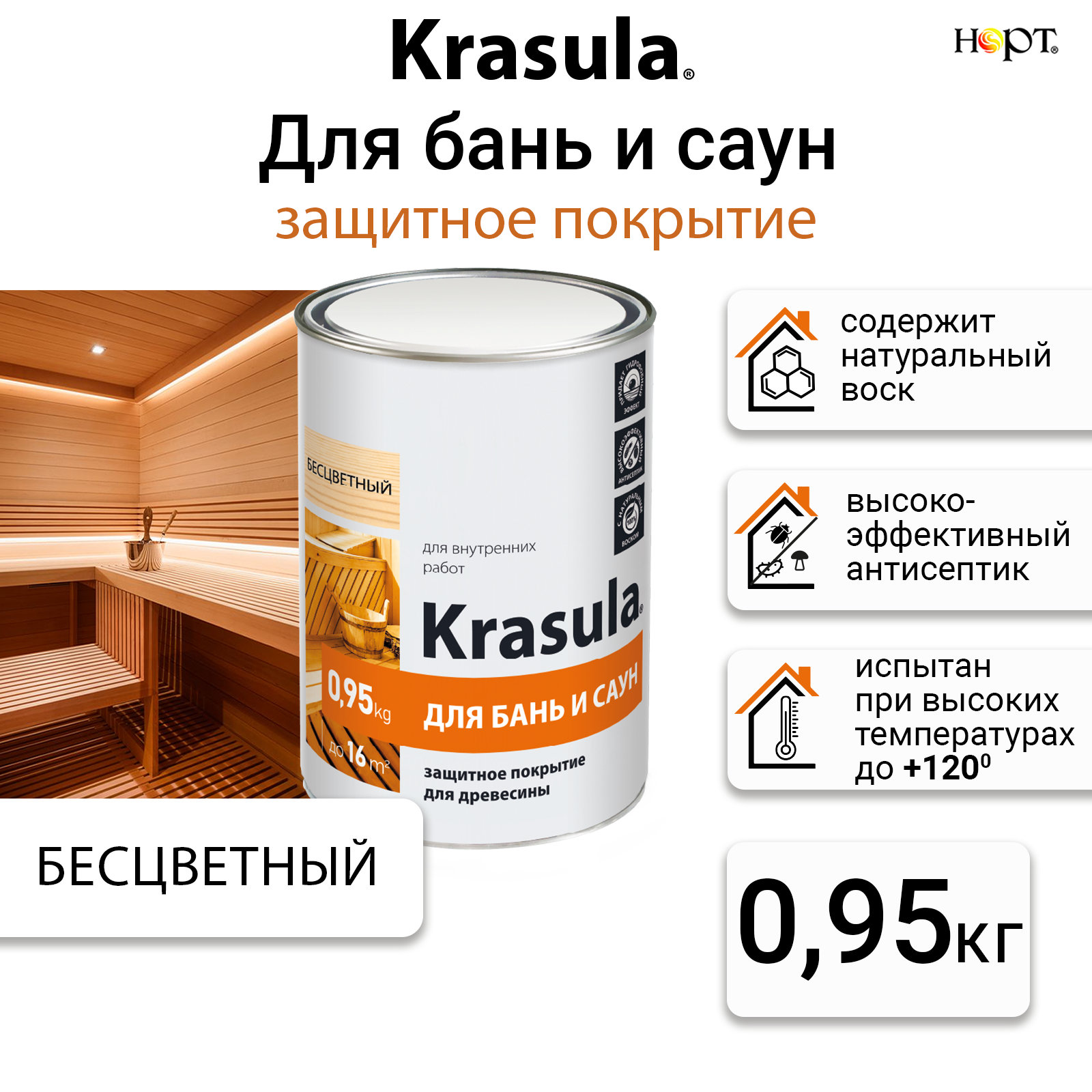 Krasula 0,95л, Красула для бань и саун, защитно-декоративный состав пропитка для древесины интересное: