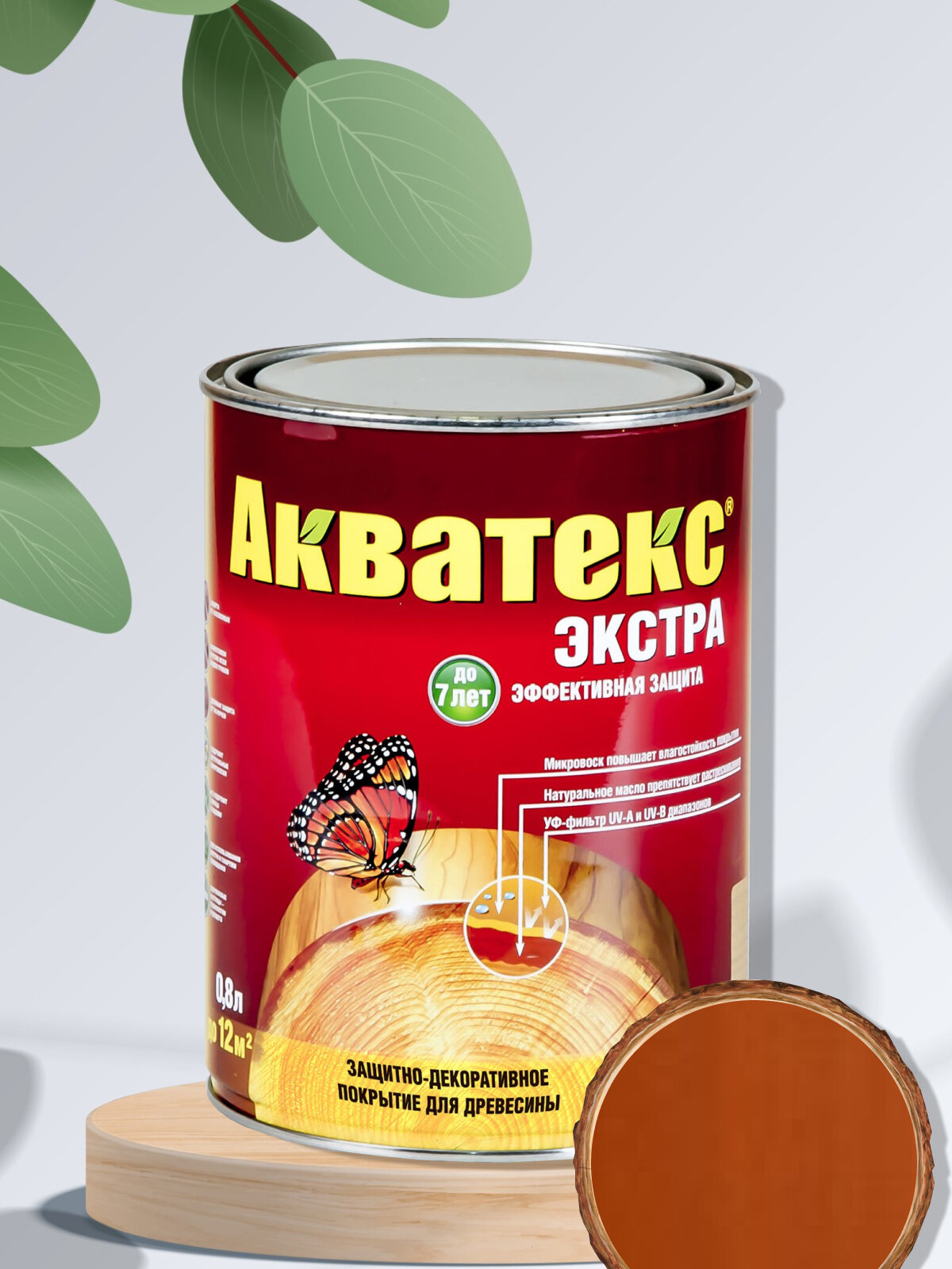 "Акватекс Экстра" защитно-декоративное покрытие для дерева, объем 0.8л, цвет рябина