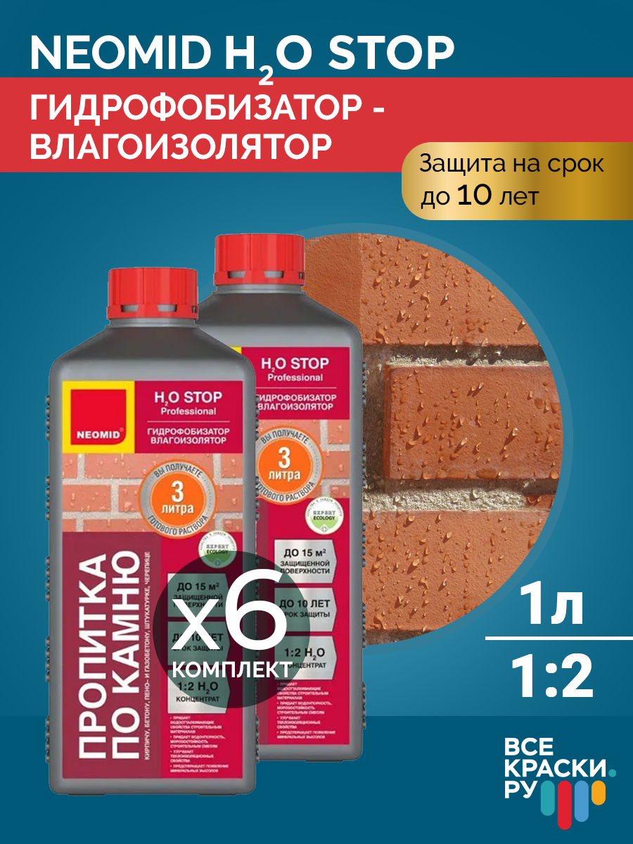 Ниже Вы можете прочитать отзывы на Гидрофобизатор-влагоизолятор для бетона Neomid H2O Stop концентрат комплект 6 штук по 1л, ознакомится с подробными характеристиками, посмотреть интересные обзоры и фотографии на Гидрофобизатор-влагоизолятор для бетона Neomid H2O Stop концентрат комплект 6 штук по 1л.