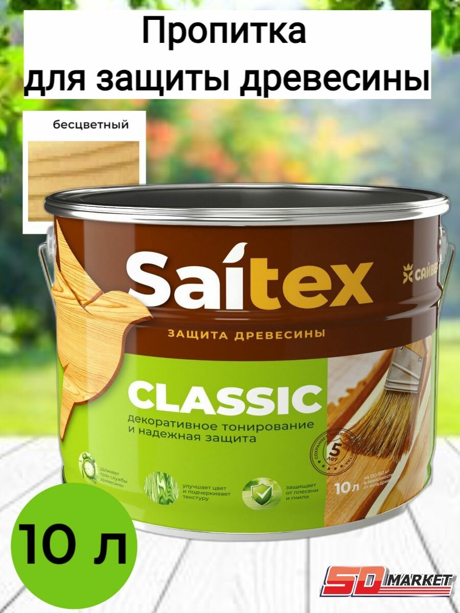 Пропитка, защита для дерева SAITEX CLASSIC / Сайтекс классик (бесцветная) 1л