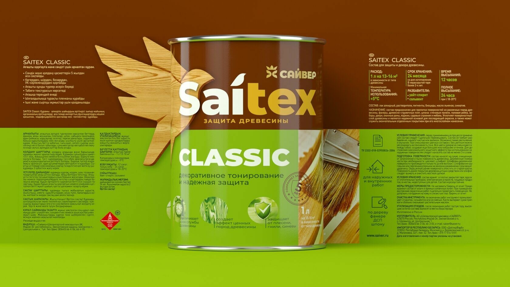 Пропитка, защита для дерева SAITEX CLASSIC / Сайтекс классик (бесцветная) 1л