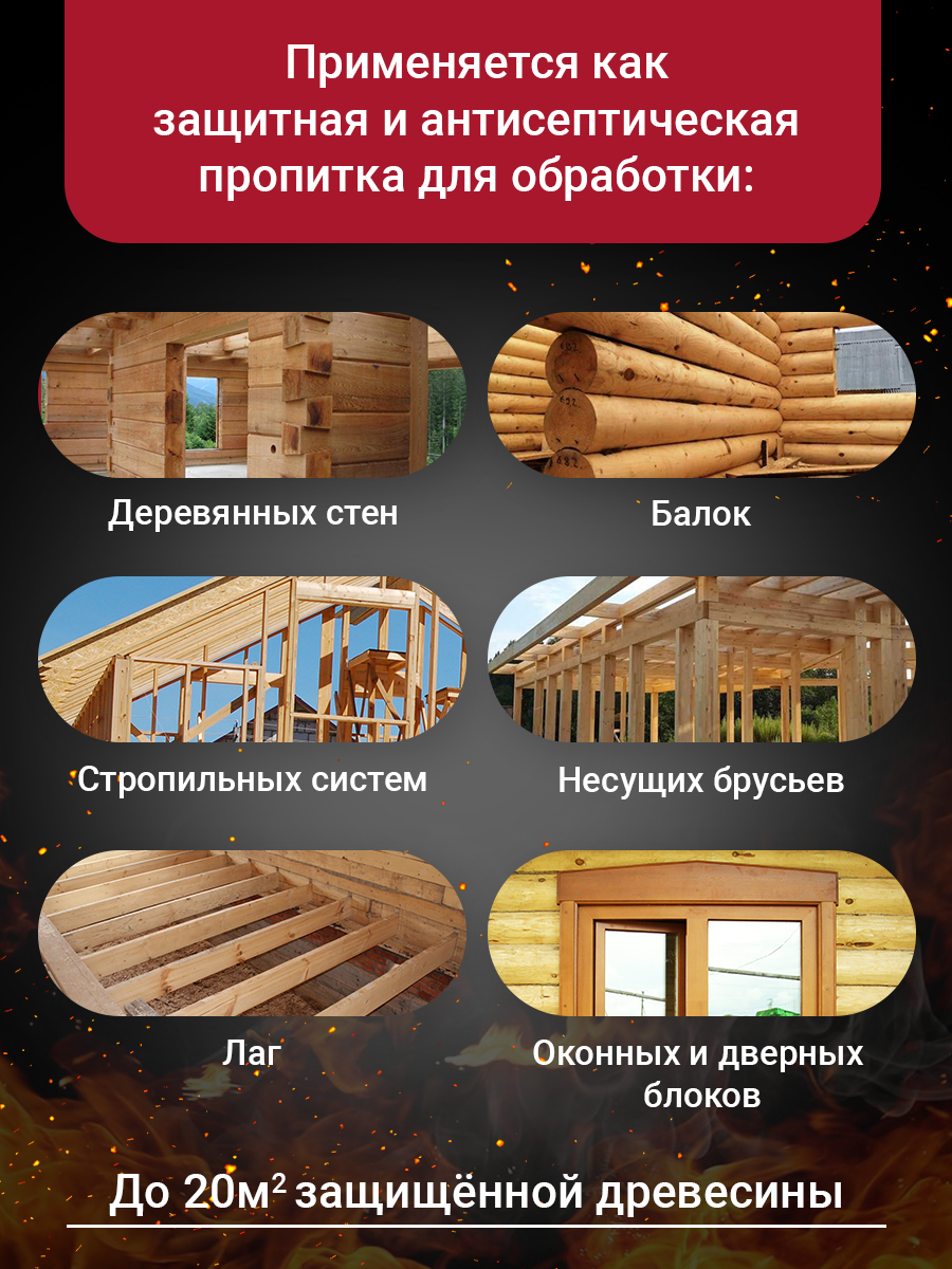 | Дополнительная информация | время высыхания не менее 48 ч. при t 16-20°C, относительной влажности 60%; срок защиты: огнезащита – до 7 лет, биозащита - до 10 лет; температура хранения: от +5°C до +40°C, допускается 5 циклов замораживания-размораживания; после вскрытия продукт использовать в течение 14 дней |
