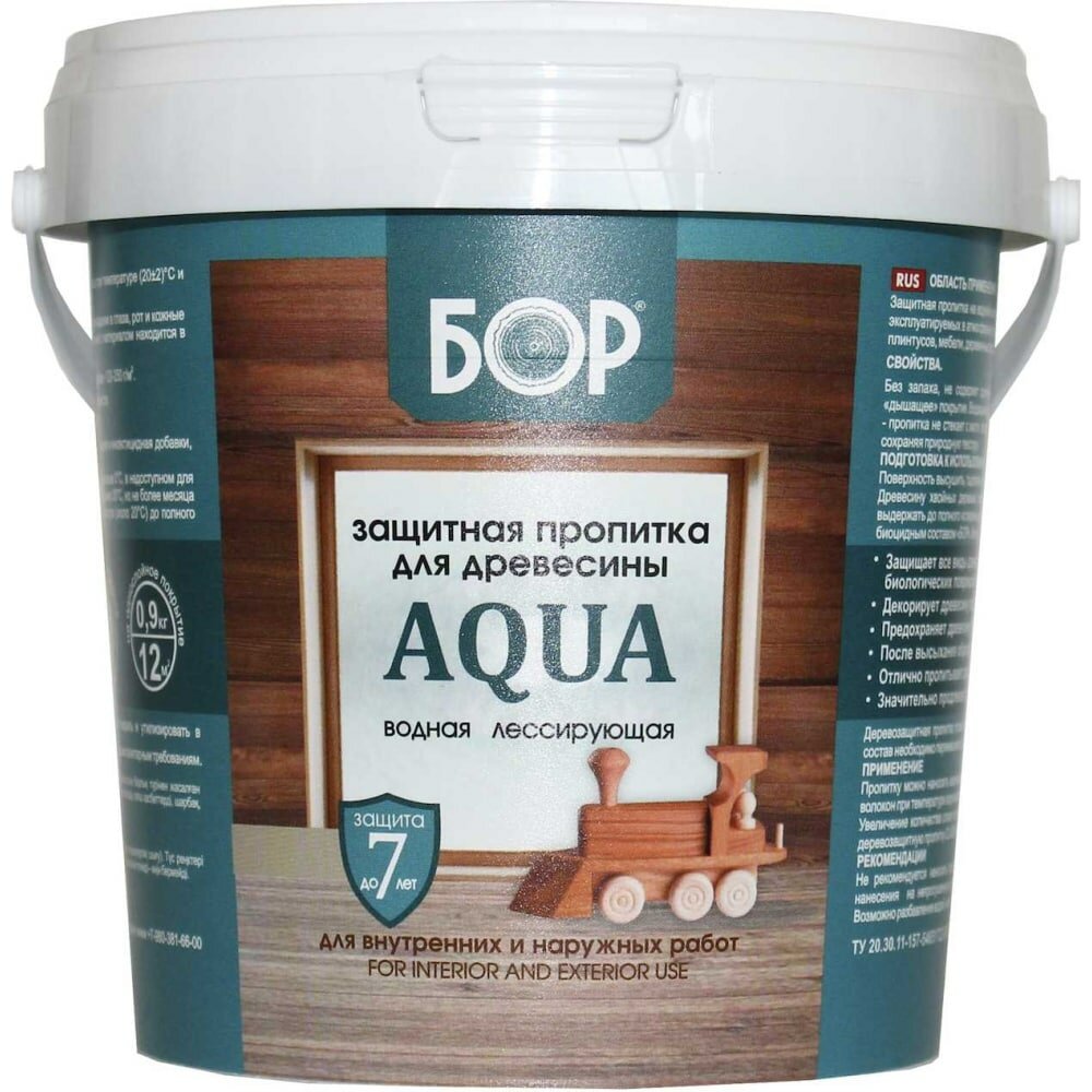 Бор Защитная пропитка для дерева Aqua для наружных работ, Сосна 0,9 кг