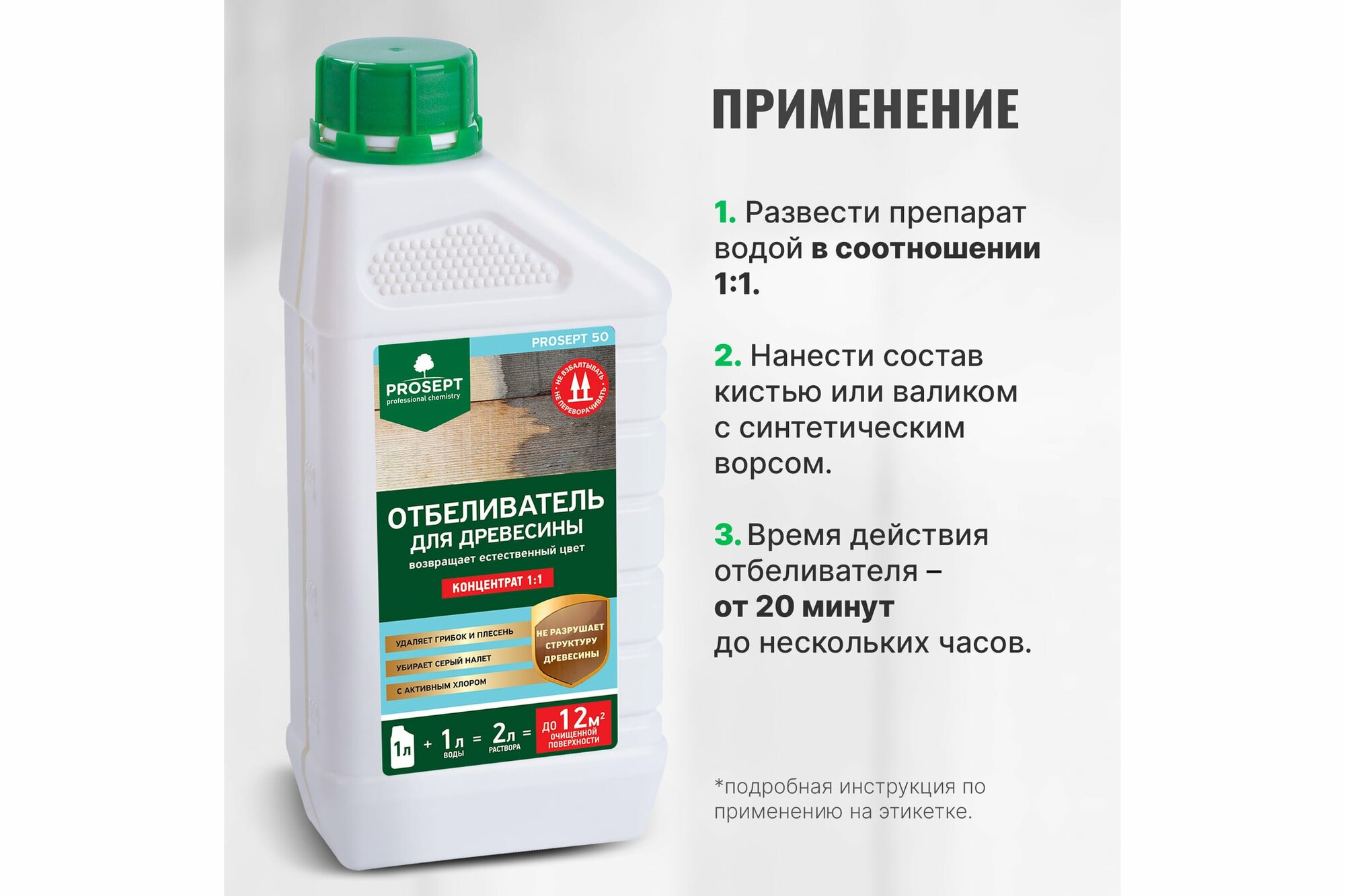 Отбеливатель для древесины Prosept 50 концентрат 1:1 (1л)