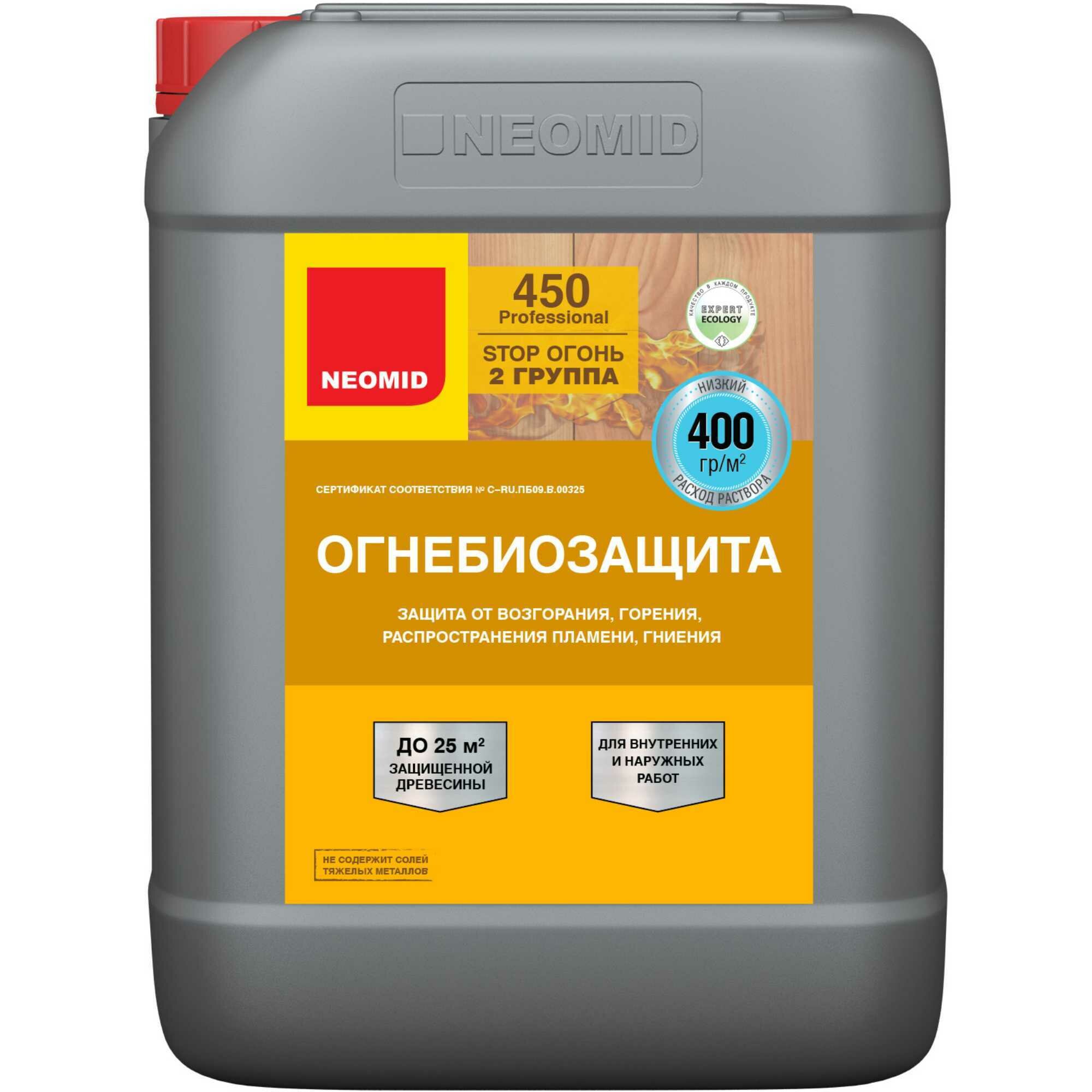 Огнебиозащита Neomid 450 2 группа огнезащитной эффективности, для внутренних и наружных работ, бесцветный 10кг