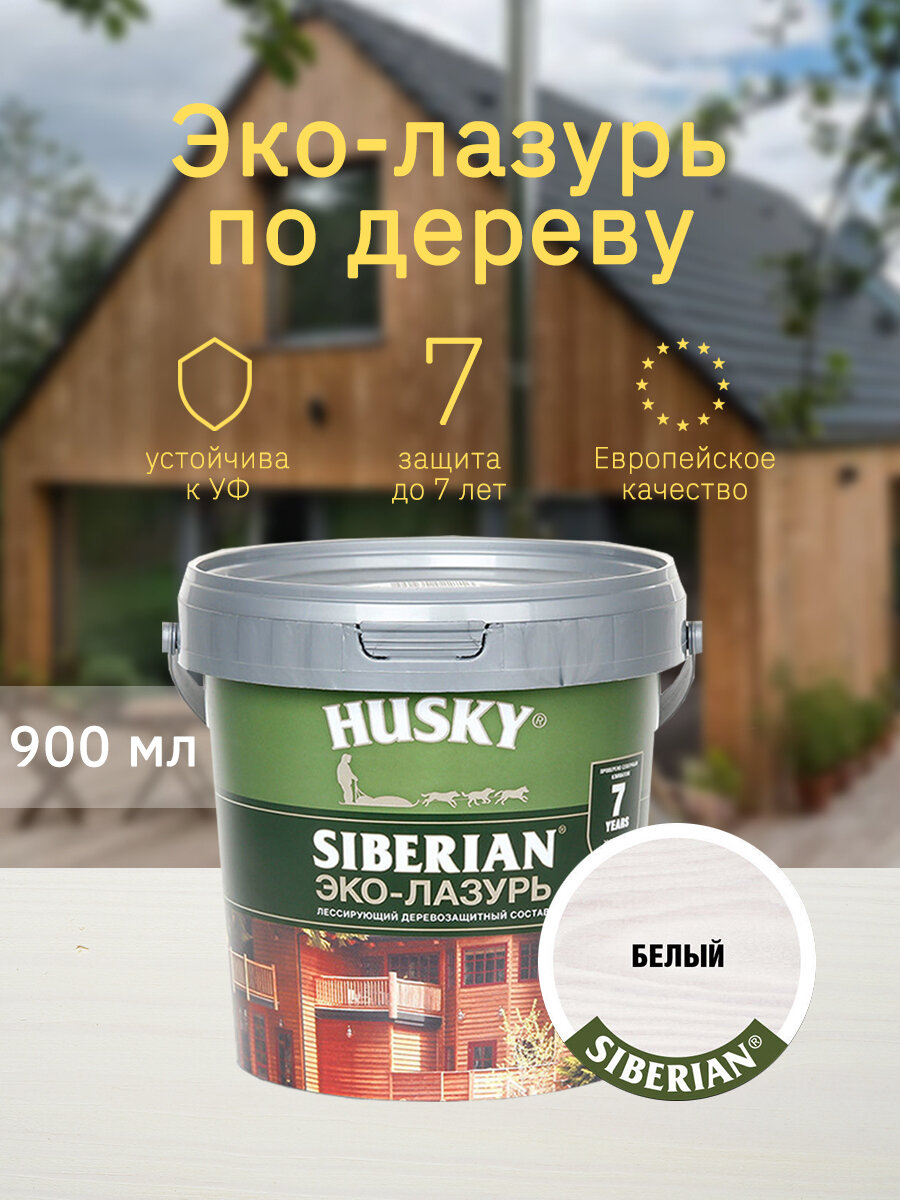 Купить HUSKY SIBERIAN Эко-Лазурь для дерева полуматовая белая (0,9л)