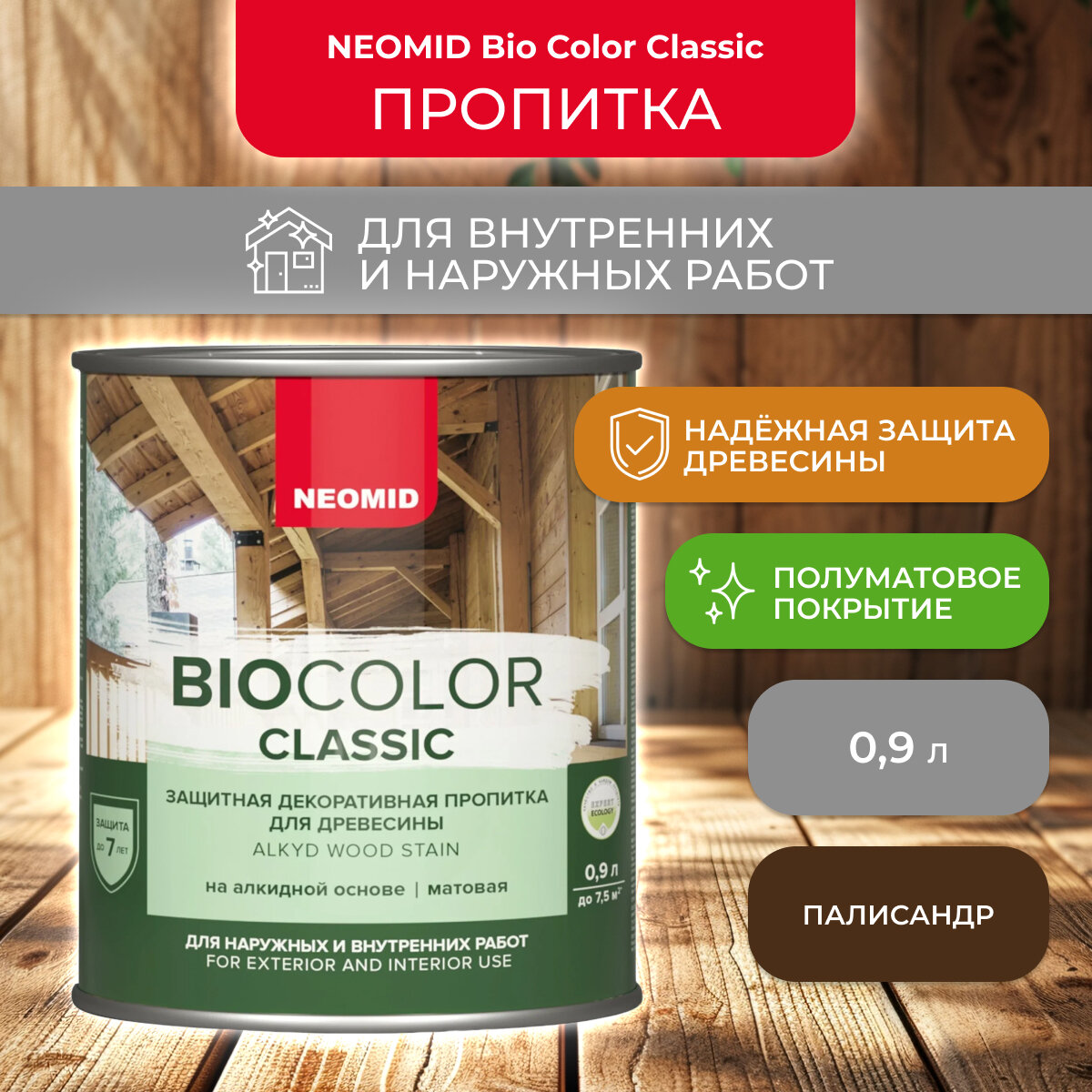 Защитно-декоративная пропитка для дерева Neomid Bio Color Classic, полуматовая, 9 л, палисандр