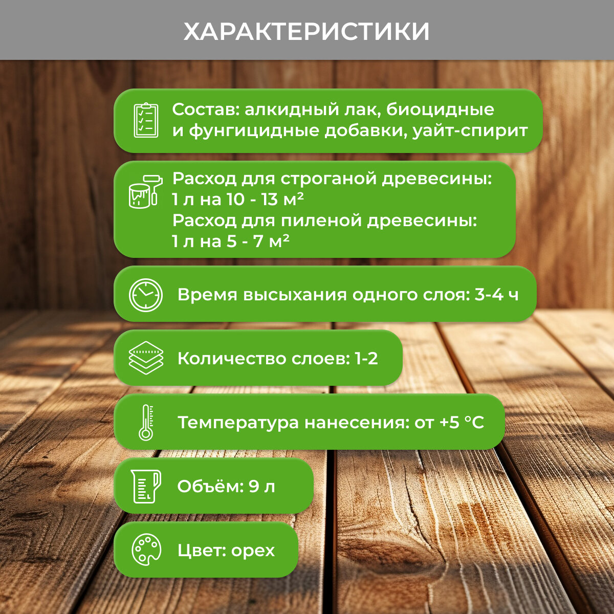 | Особенности | УФ-защита, быстросохнущая, водозащитная, декоративная, для использования в бане/сауне, морозостойкая, с антисептиком |