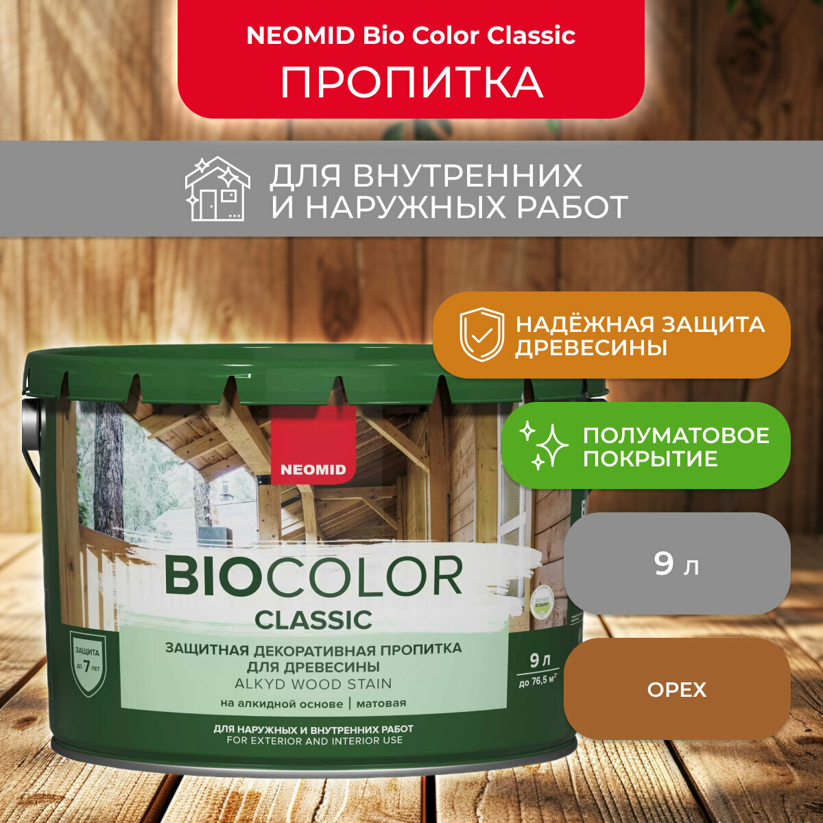 Защитно-декоративная пропитка для дерева Neomid Bio Color Classic, полуматовая, 9 л, палисандр